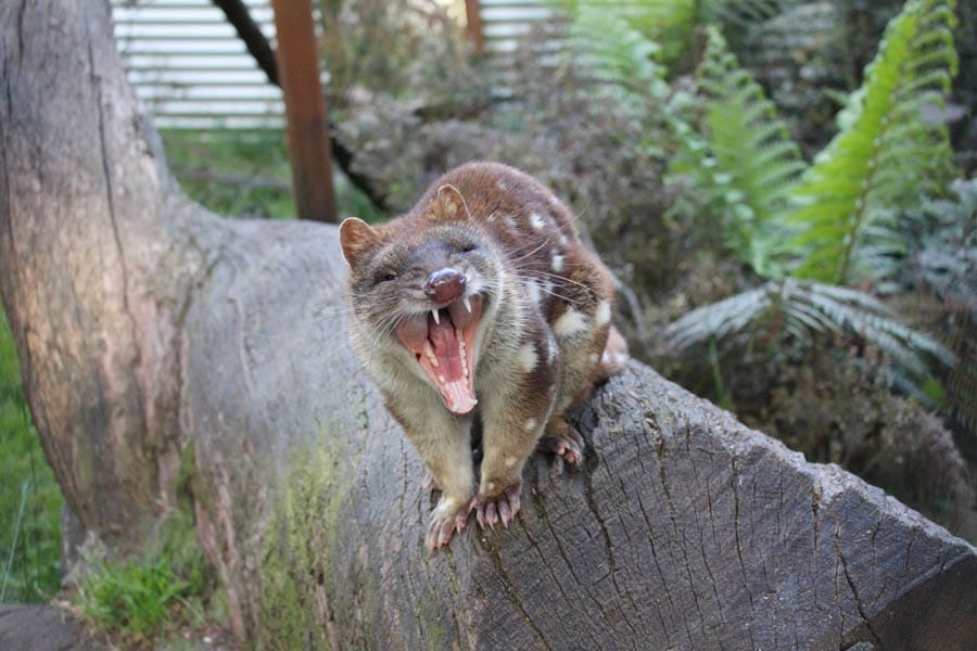 午餐时间,在导游的带领下步行穿过保护区,观赏当地物种。最后在最大的围场之一进行身临其境的塔斯马尼亚袋獾喂食活动。恶魔在进食时间最活跃、最“吵闹”,在围栏内可以 360 度观看。经验丰富的导游对它们臭名昭著的进食行为、饮食和保护工作进行评论