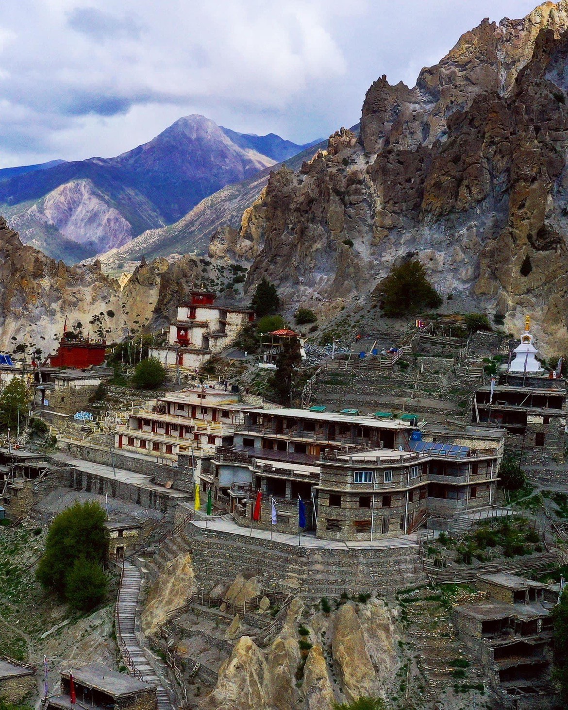 参观传统村庄并结识友善的当地人。欣赏**安纳布尔纳峰**、**道拉吉里峰**和**马纳斯鲁峰**等大山的壮丽景色。在马南待一天以适应高海拔。
