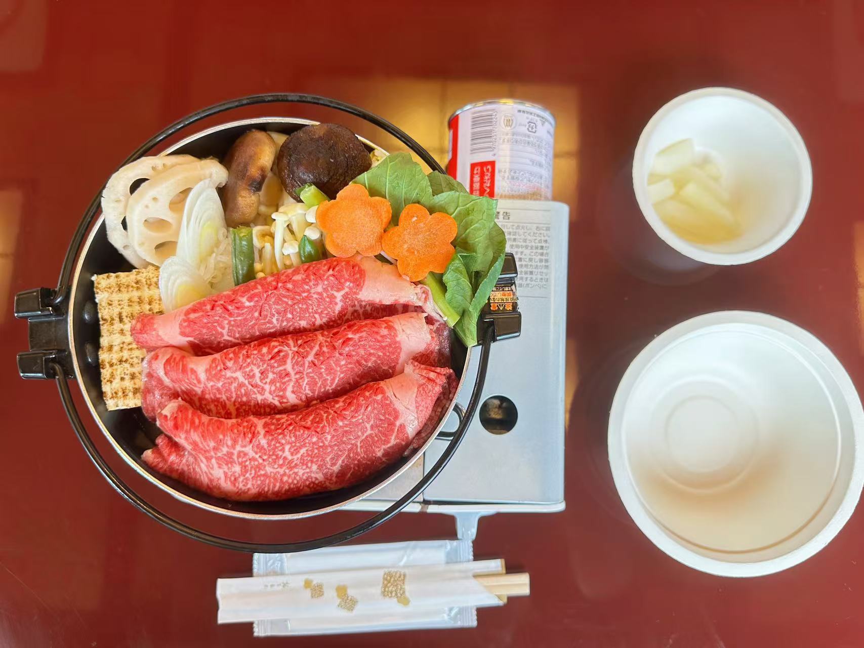 餐食:默认牛肉日式寿喜锅,如果您更喜欢猪肉或素食(配有蔬菜和甜酱油汤),请提前3天告知,若有忌口下单时可以备注