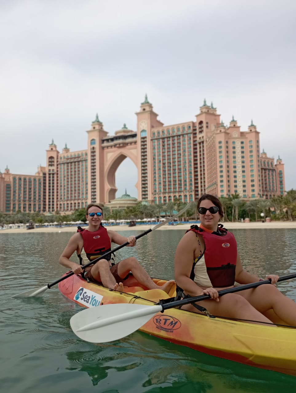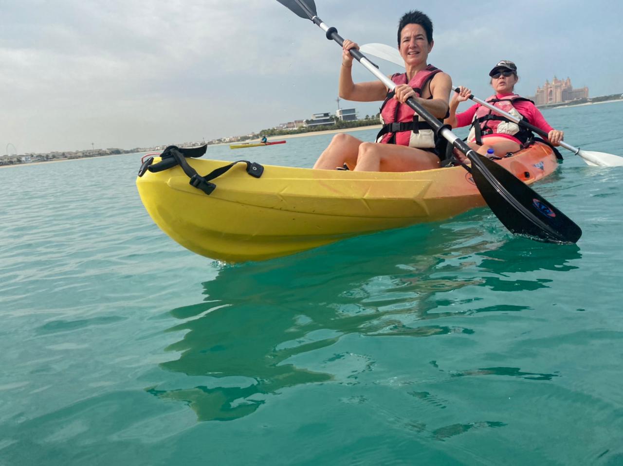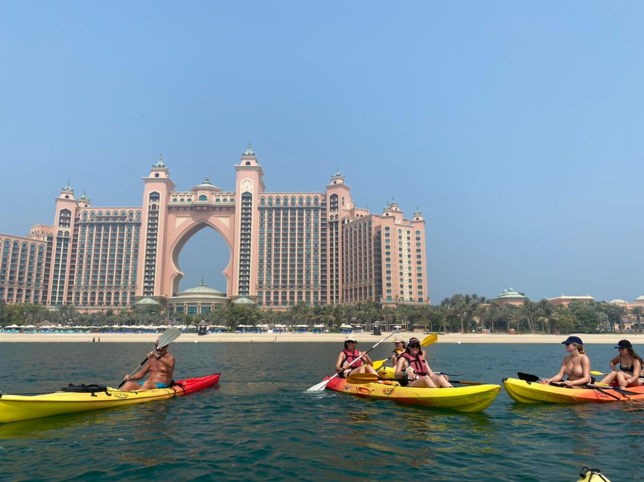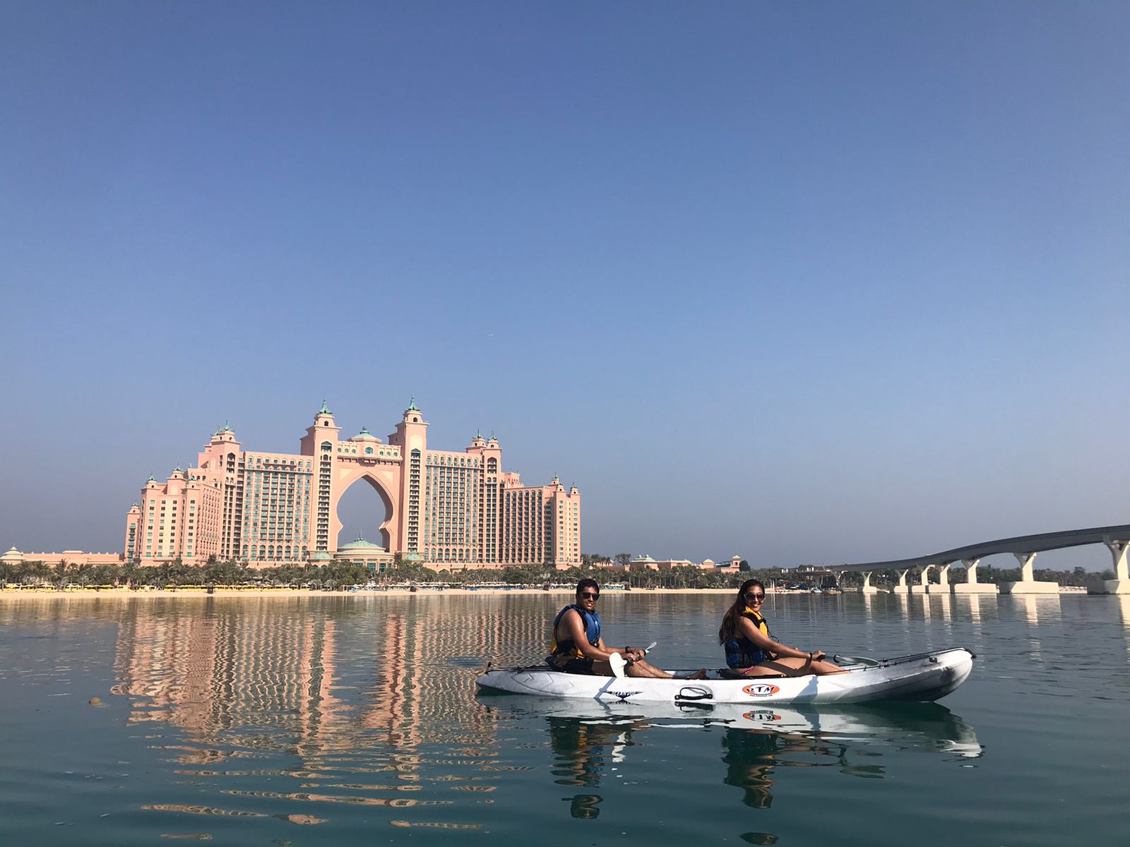 在这个 2 个半小时的旅游中,您可以与自己的导游一起在朱美拉棕榈岛平静清澈的海水中划船,他将带您穿越朱美拉棕榈岛。