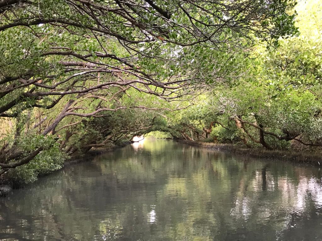 乘船游览四草绿色隧道,竹筏缓缓移动,感受城市秘境的静谧