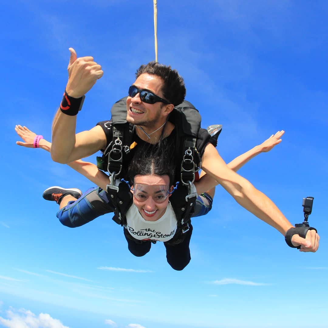 - 搭飞机爬升到 13,000 英尺并与教练一起跳下