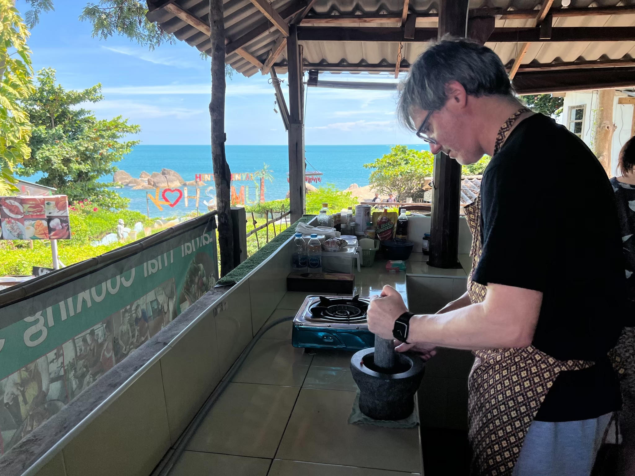 在令人惊叹的露天厨房体验泰式烹饪,欣赏令人惊叹的海景。