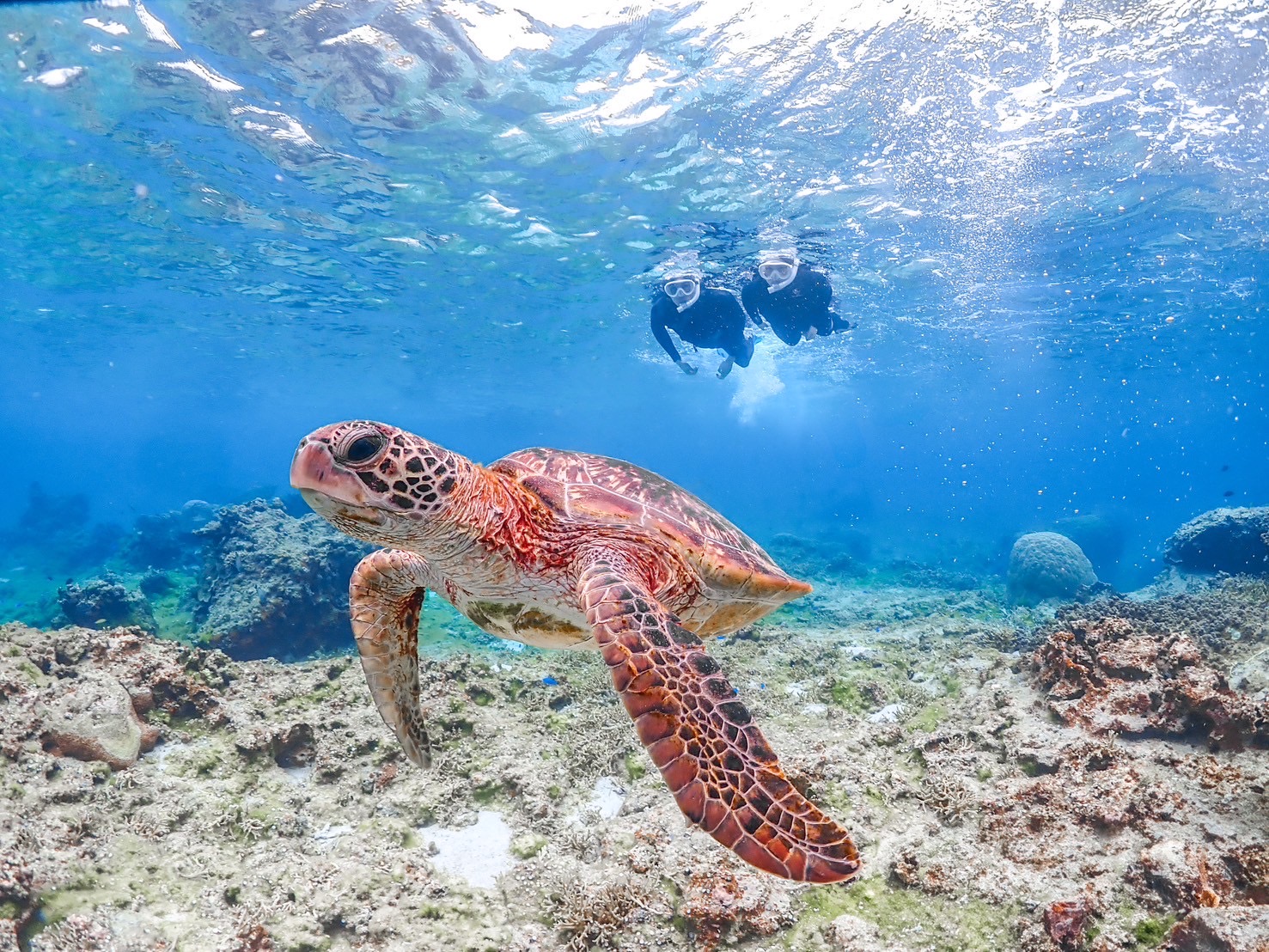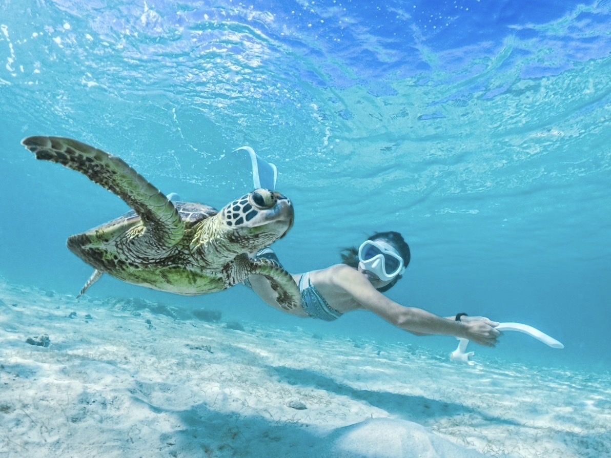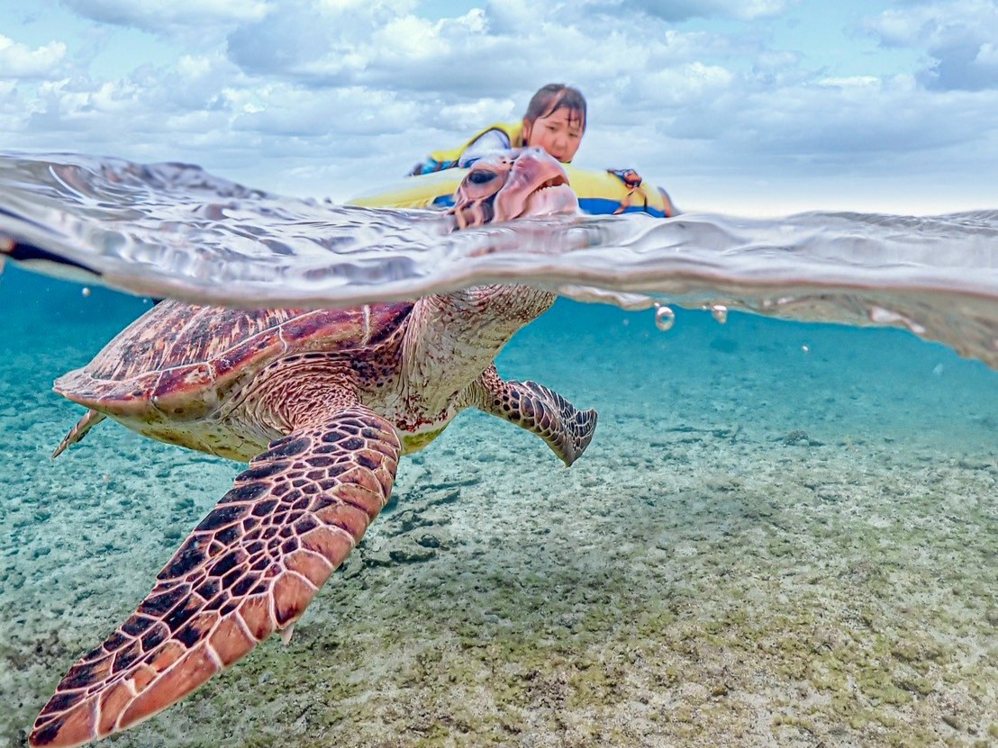 在被称为“宫古蓝”的大海中体验与海龟一起浮潜!