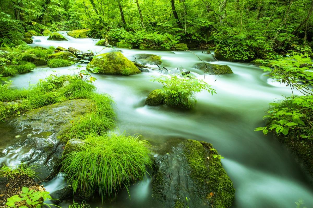 奥入瀬渓流的水流清澈,岩石长满苔藓,春夏秋冬四季间变换着不同的风姿, 诗情画意的人间仙境描写的就是这里的美景