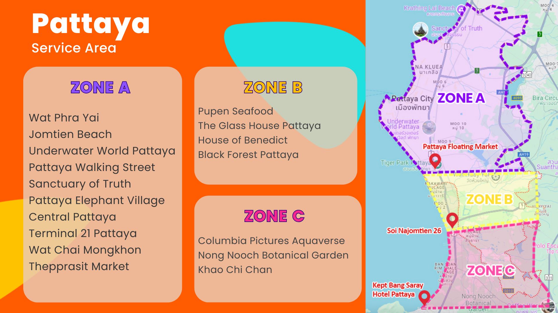 此活动提供曼谷和芭达雅之间的私人城市交通服务。您可以透过选择您喜欢的接送点和下车点来客制化您的旅程。结帐时,只需提供您的饭店、机场或其他特定地点的详细资讯。