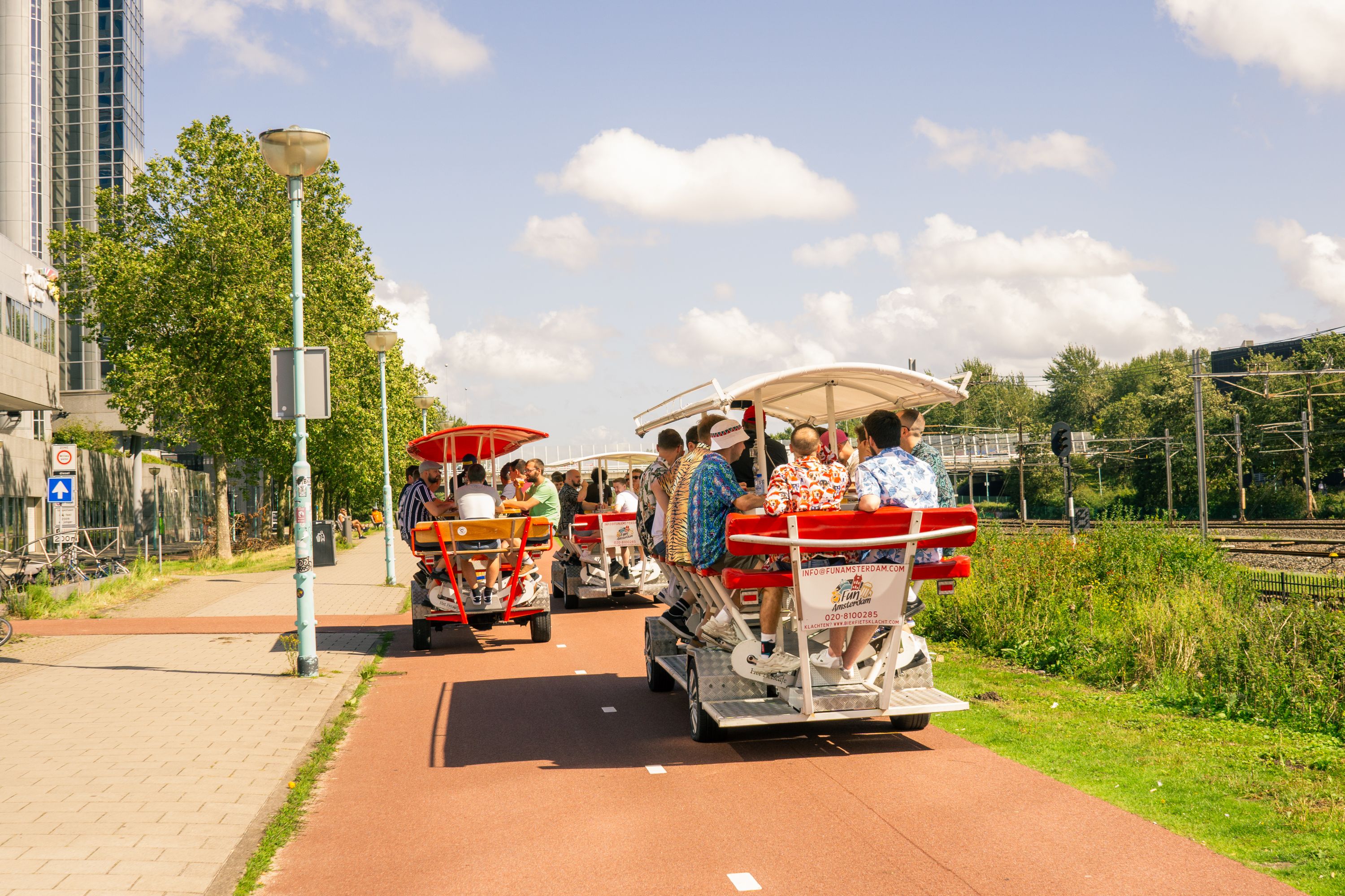经验丰富的司机或导游将带您穿越充满活力的斯洛特戴克市。非常适合单身派对或与朋友一起度过愉快的一天,这种难忘的体验将为您留下永久的回忆。骑上派对自行车,以令人兴奋和难忘的方式探索阿姆斯特丹