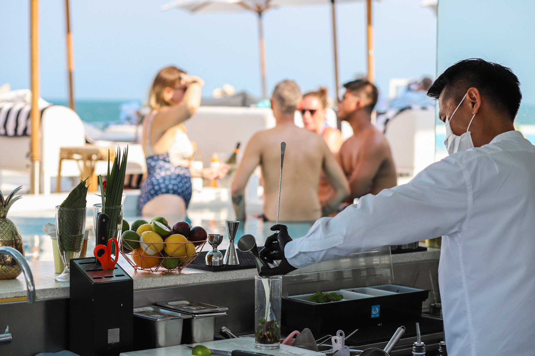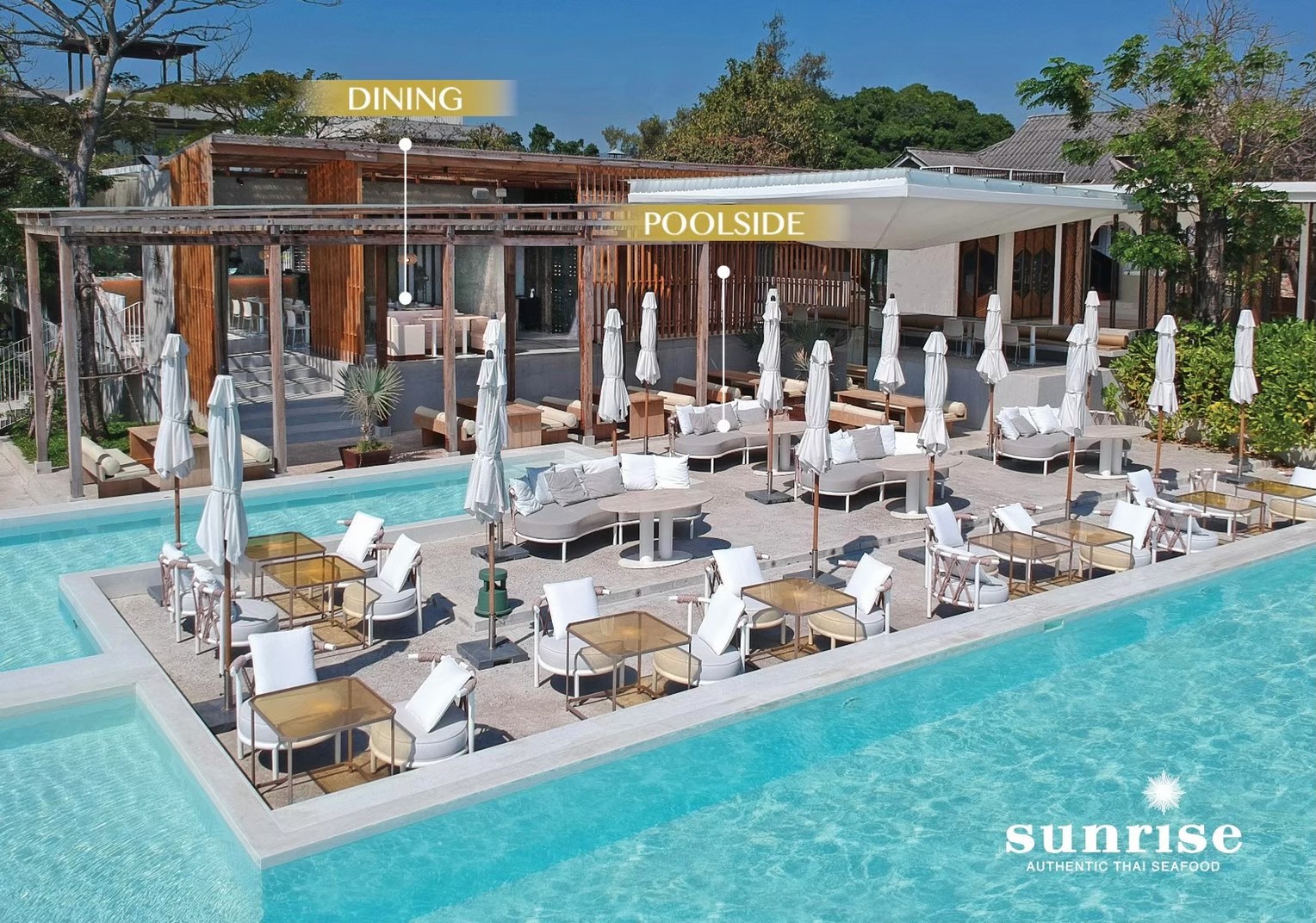 在华欣最好的海滩俱乐部小酌、畅饮和用餐!在我们的池畔酒吧沐浴阳光并享用各种饮品,同时我们的 DJ 会播放最时髦的唱片,让您彻夜跳舞。