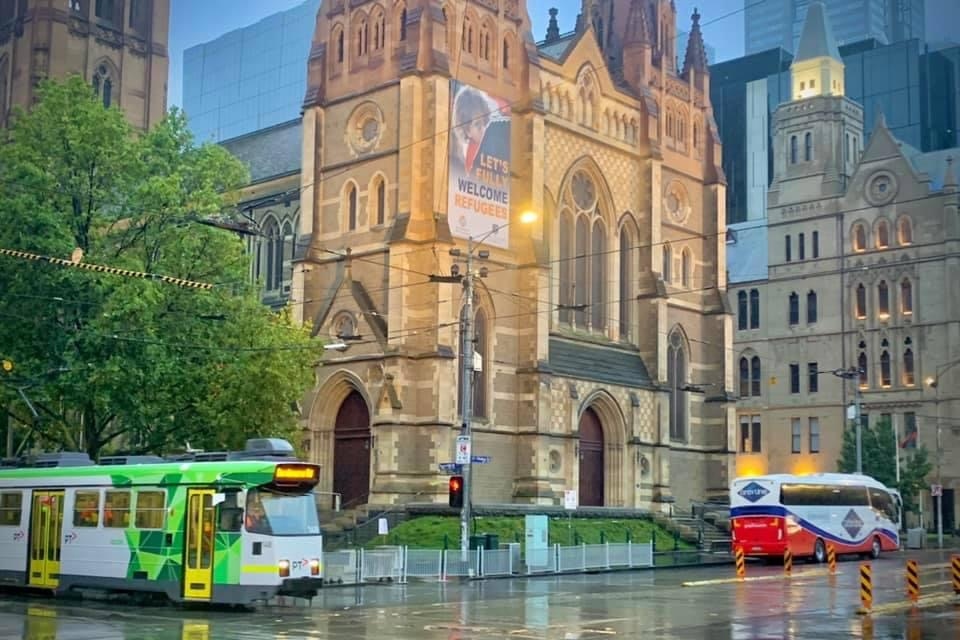 从繁华的弗林德斯街拍摄标志性的圣保罗大教堂