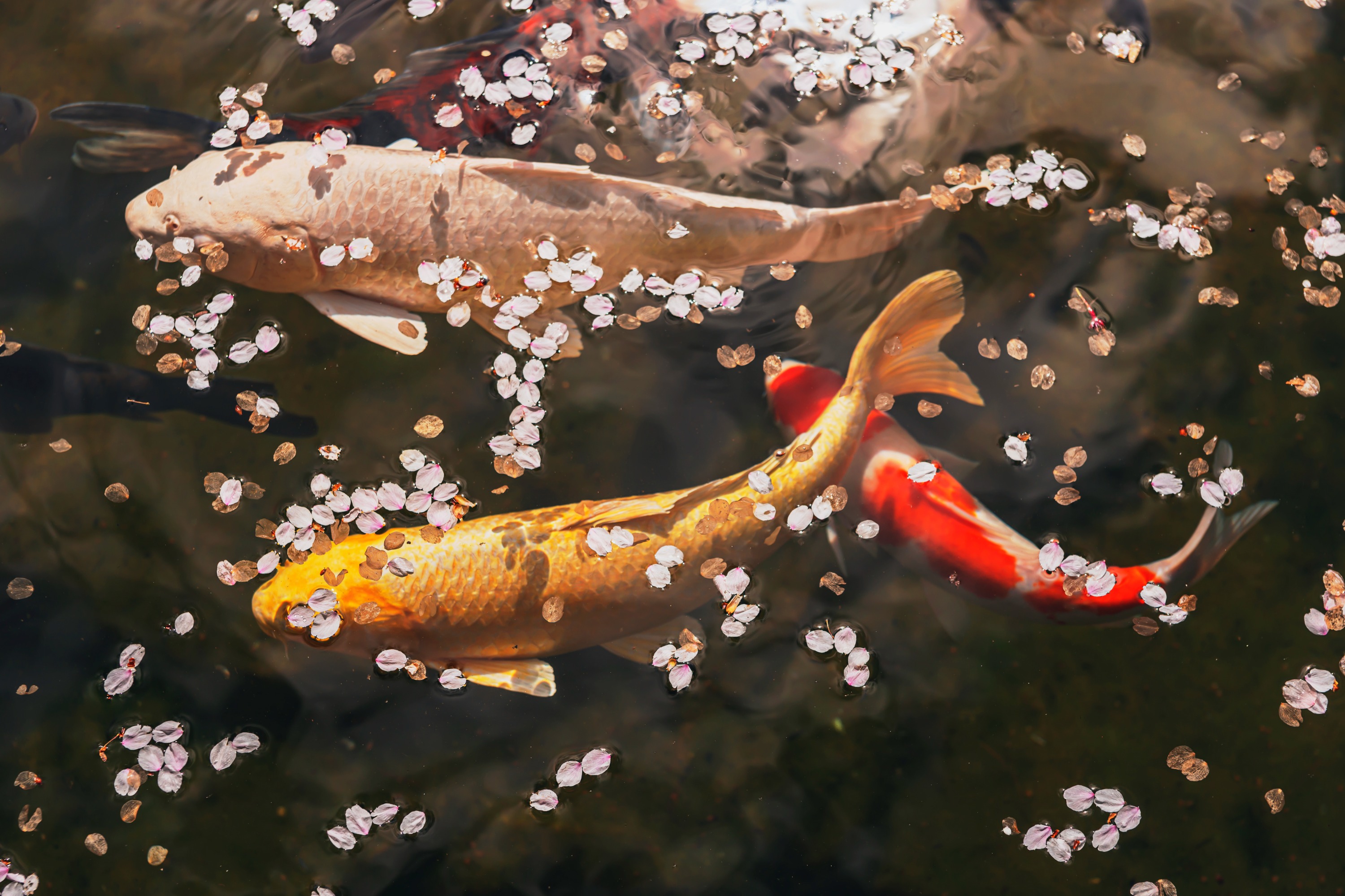 春天樱花开放时还能看到锦鲤与樱花共舞的景象