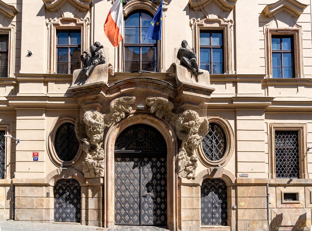 位于布拉格小城区涅鲁多瓦街的意大利大使馆是一座优雅的历史建筑,展示了古典的建筑元素,是外交存在的象征。