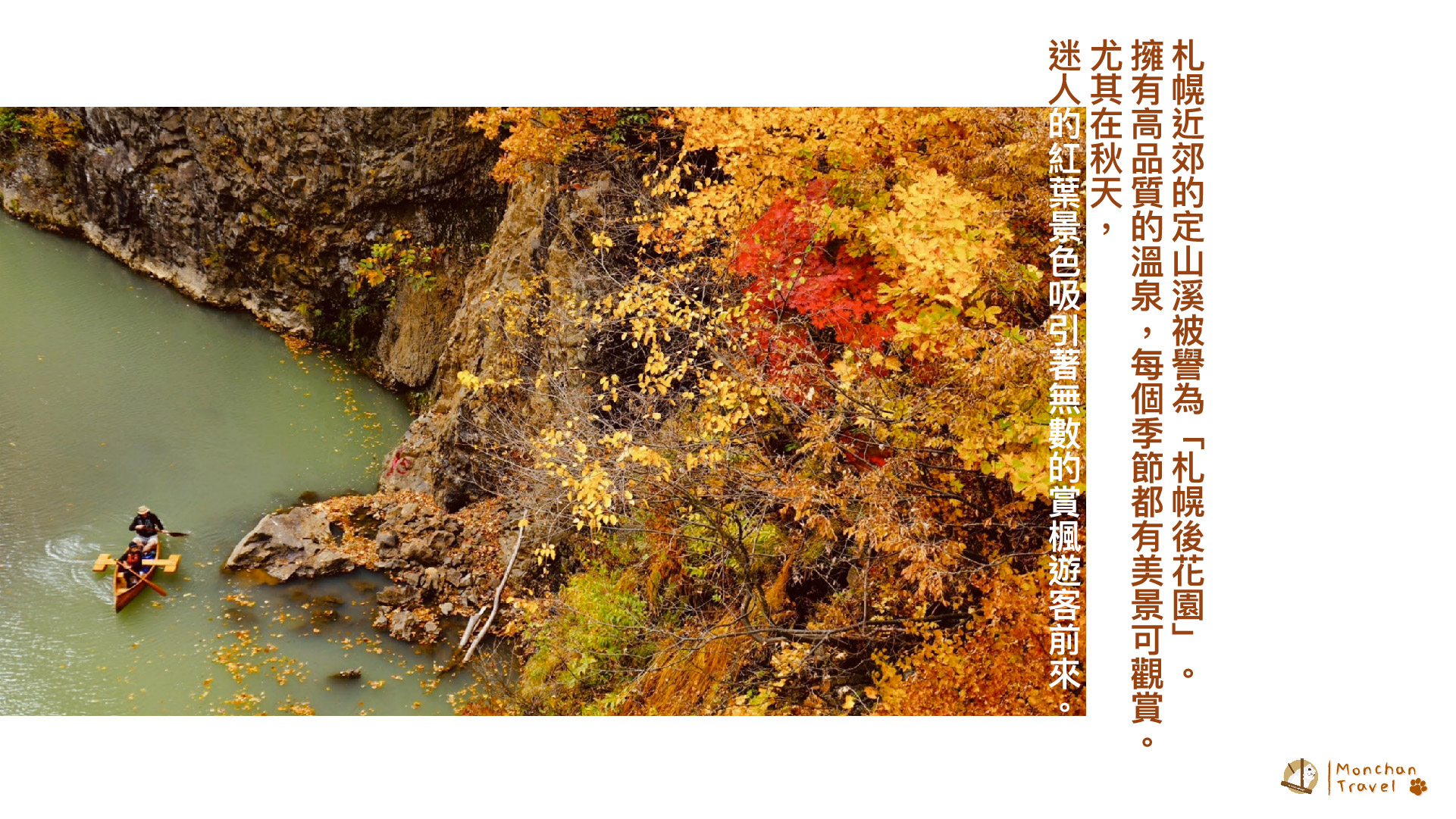 秋日札幌近郊一日游,枫红与松绿相映成趣。在定山溪鹤雅享用美味午餐,徜徉丰平峡的壮丽景致。漫步泷野铃兰公园,购物乐趣尽在三井OUTLET。满足自然与购物惬意,尽在这美好的一日游!