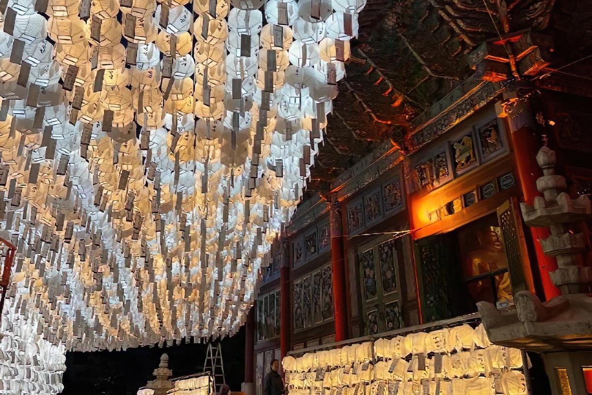 沉浸在曹溪寺的宁静氛围中,欣赏迷人的灯笼
