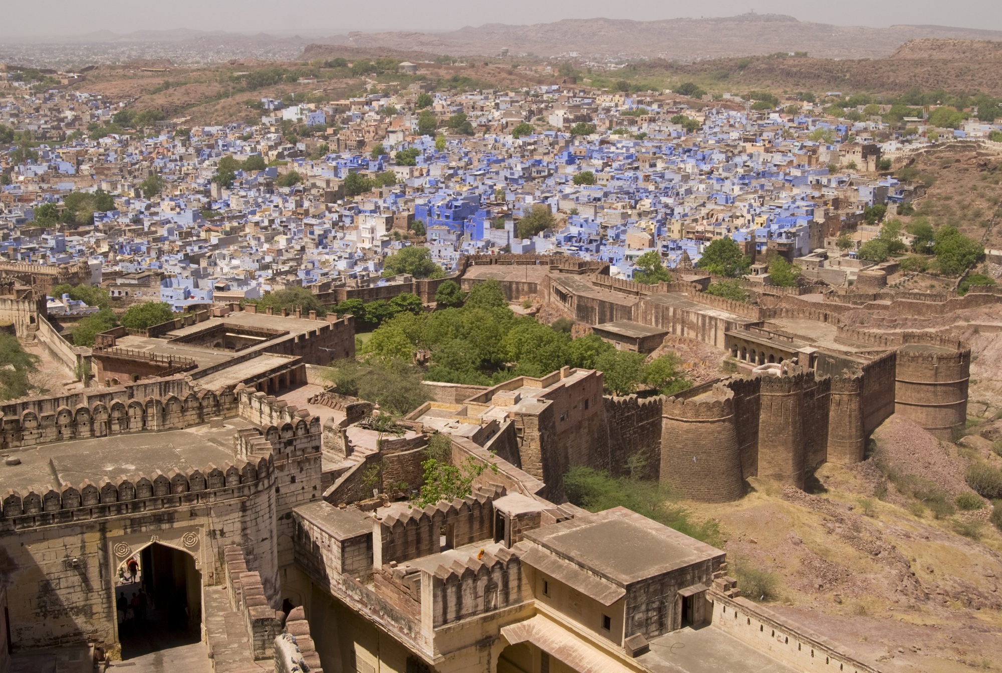 从焦特布尔的梅兰加尔堡俯瞰蓝色城市。