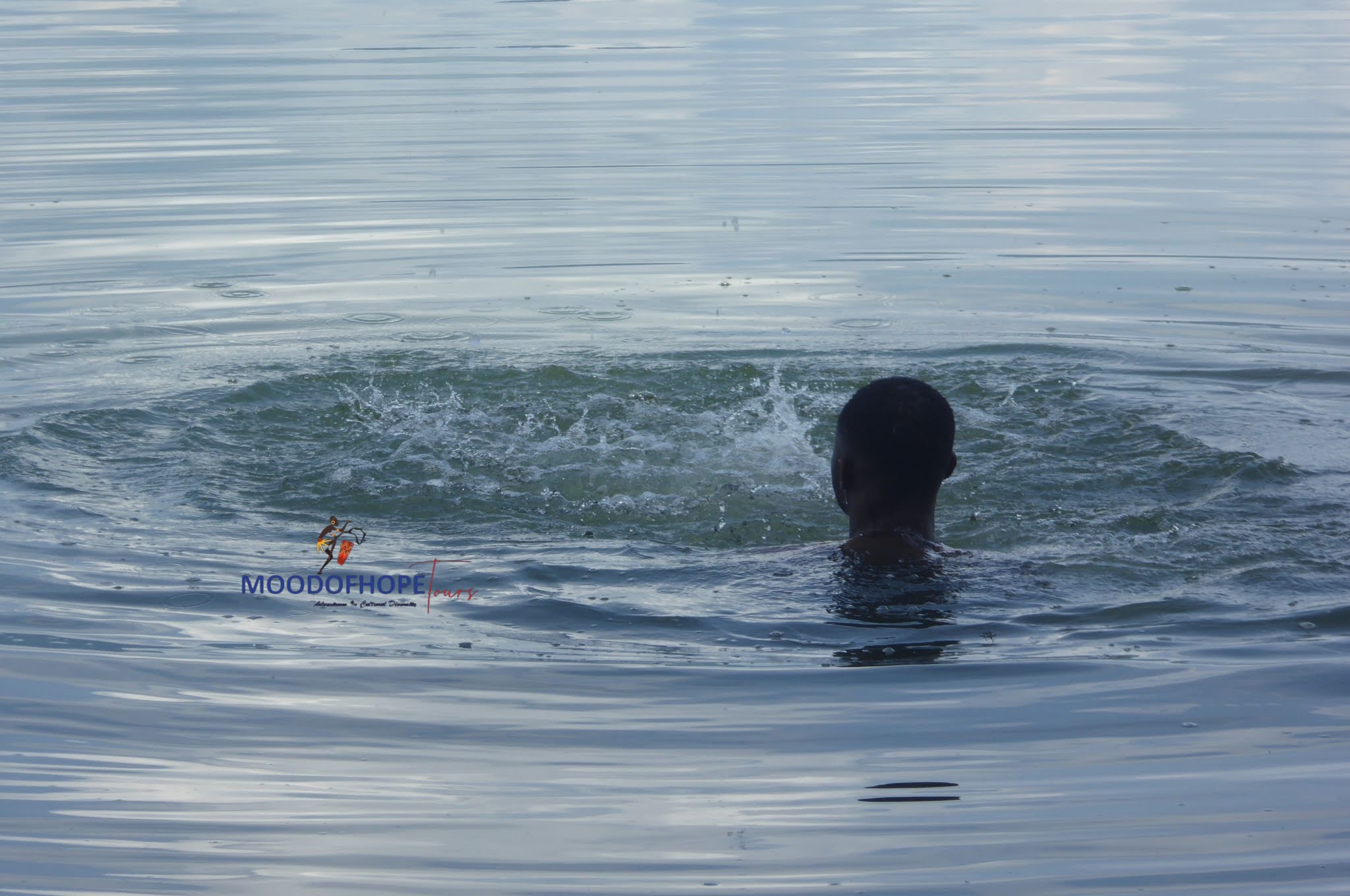 您的当地专业导游在 Bosomtwe 清澈的海水中