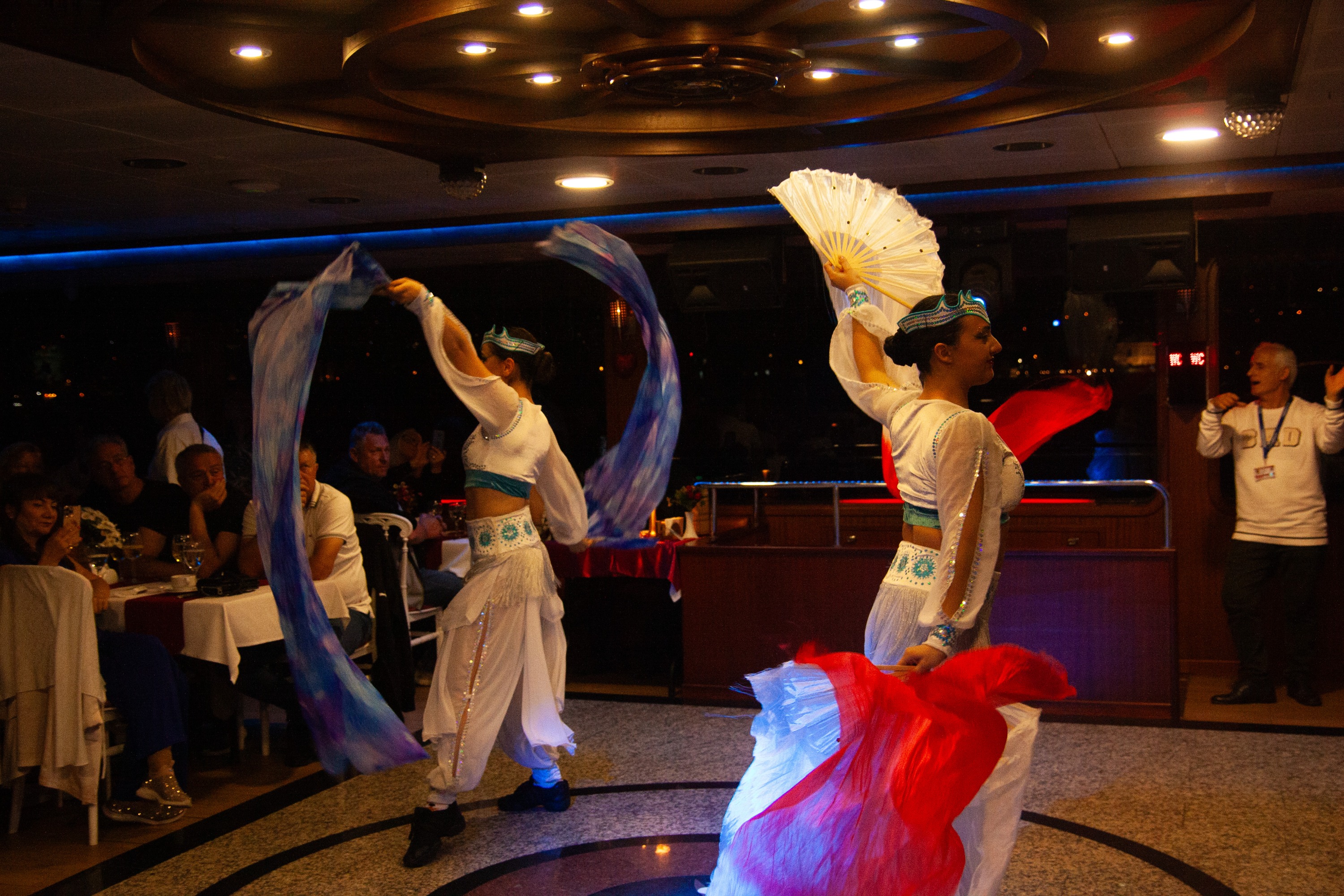 登上豪华游船,在各大洲之间滑行,享受浪漫的晚餐巡游。从土耳其软糖开始,选择烤鲈鱼、肉丸或鸡肉作为主菜。晚餐后,欣赏充满活力的民间表演,包括“katibim”、“Aşuk Maşuk”等表演。惊叹于图尔纳民谣团队的吉普赛舞蹈。如果选择的话,以饭店接送结束。
