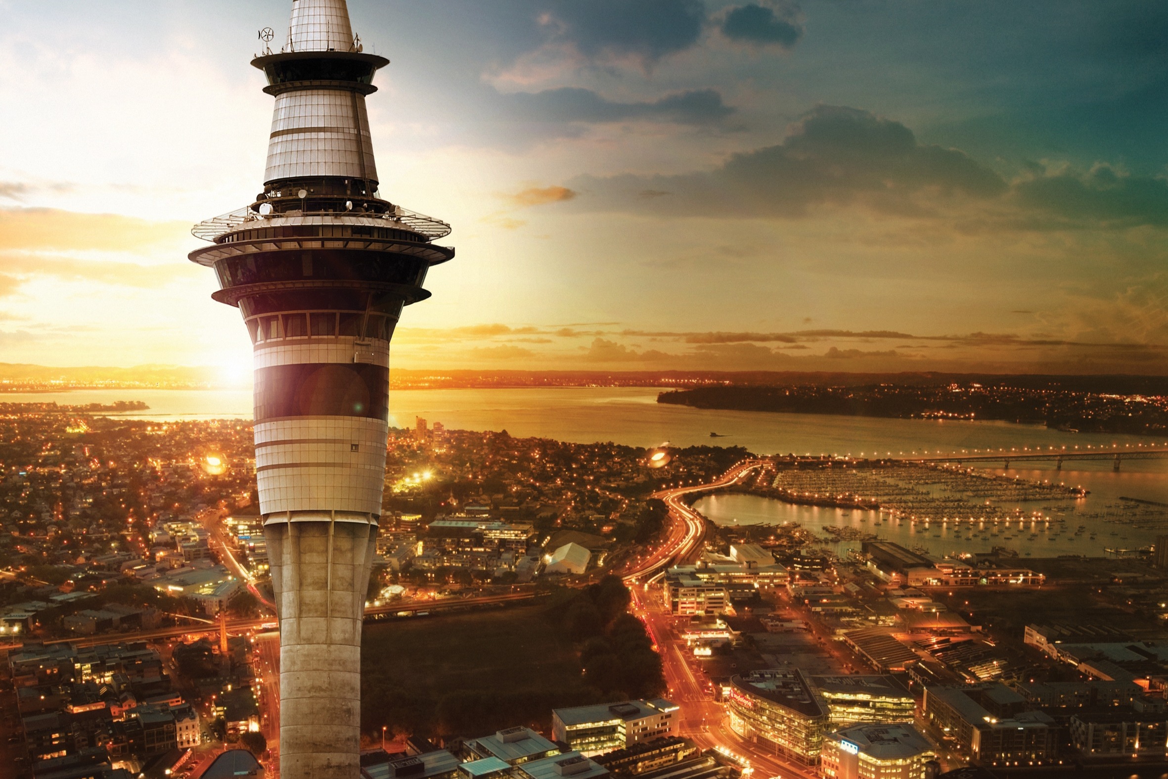 从奥克兰标志性的天空塔观景台欣赏全景