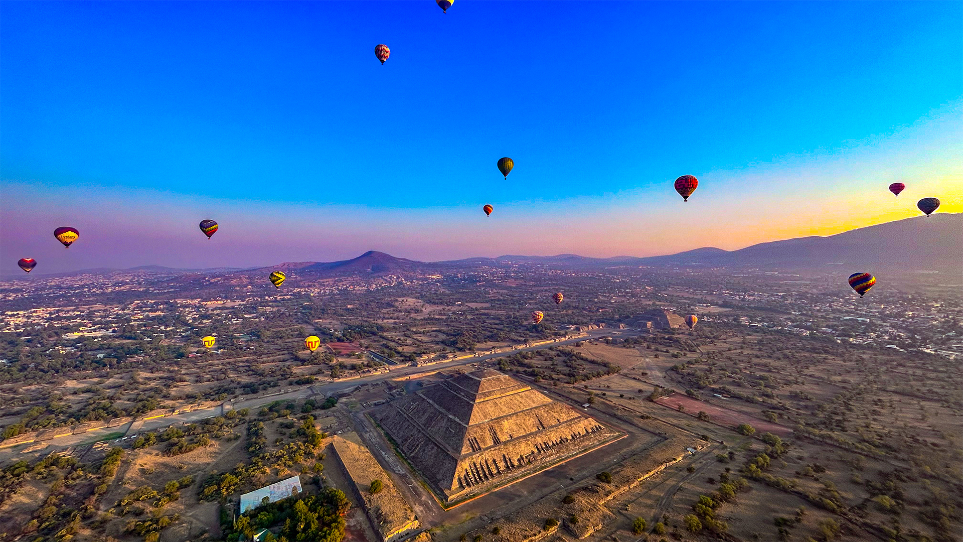 踏上独特的一日冒险之旅,包括乘坐热气球飞越令人惊叹的特奥蒂瓦坎金字塔、在导游的带领下游览这个考古遗址,以及参观著名的瓜达卢佩大教堂。