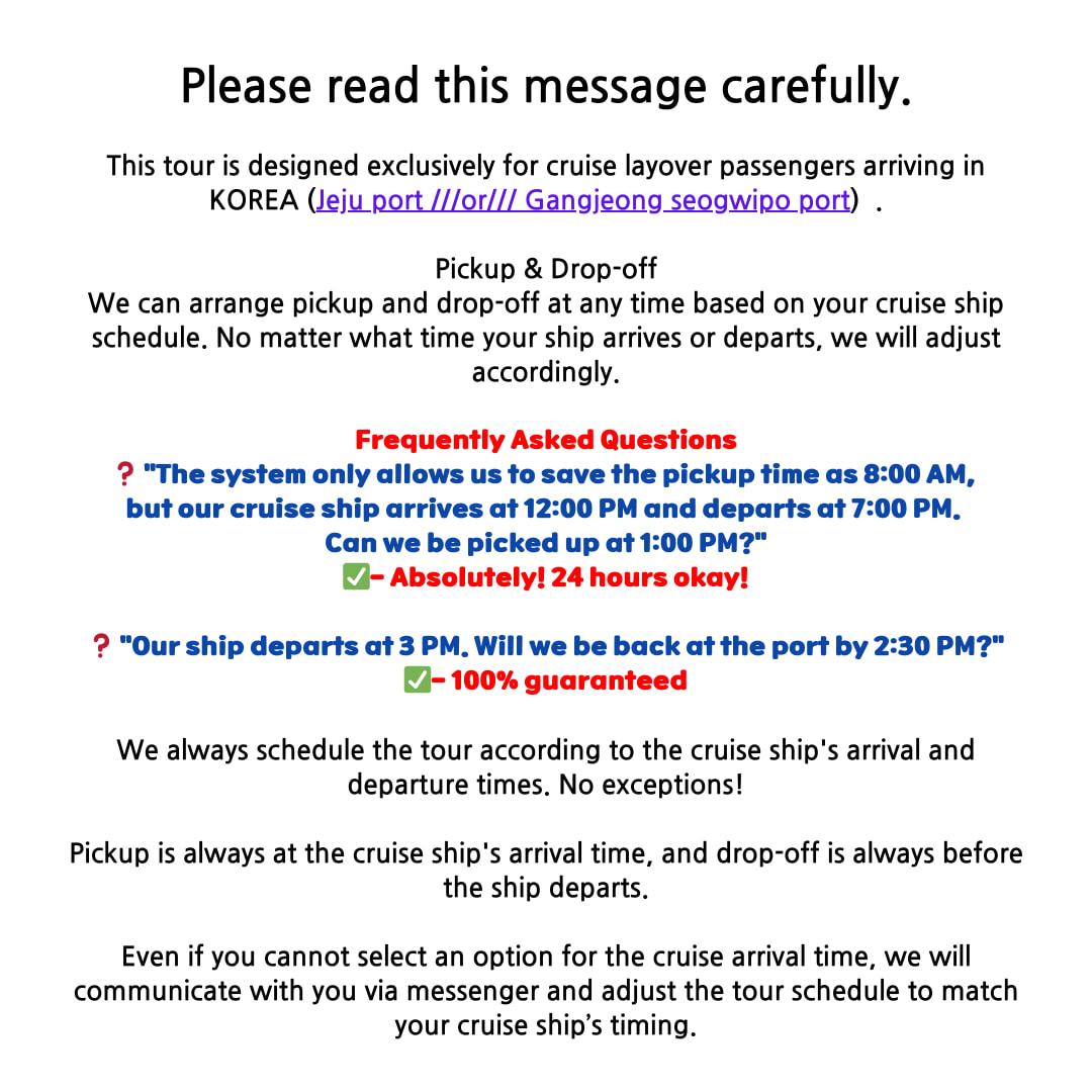 * 探索济州岛的联合国教科文组织世界遗产 - 城山日出峰,并体验当地市场。我们为邮轮旅客提供完美的行程。
