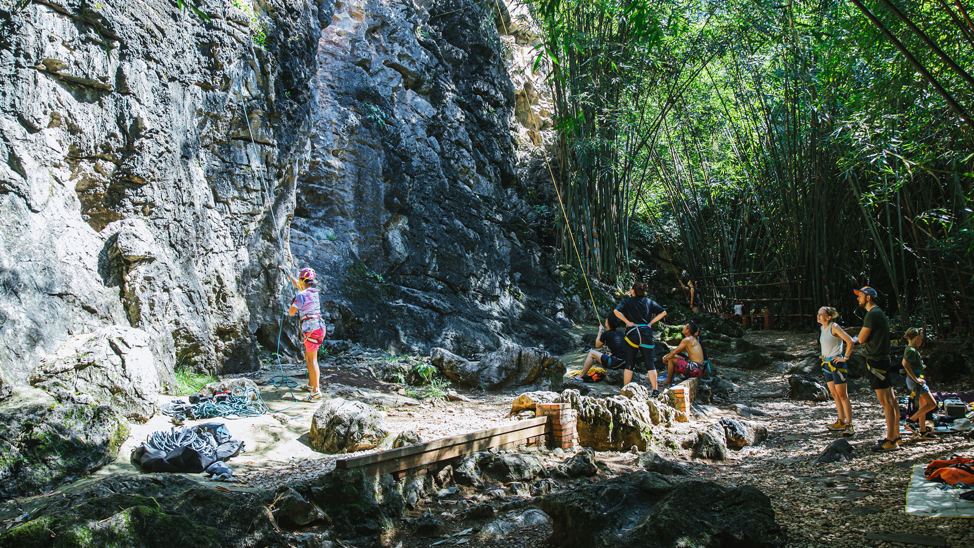 * 抵达攀岩基地