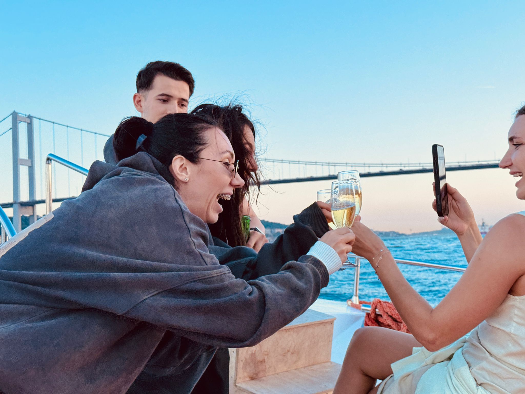 博斯普鲁斯海峡日落游船的欢乐时光
