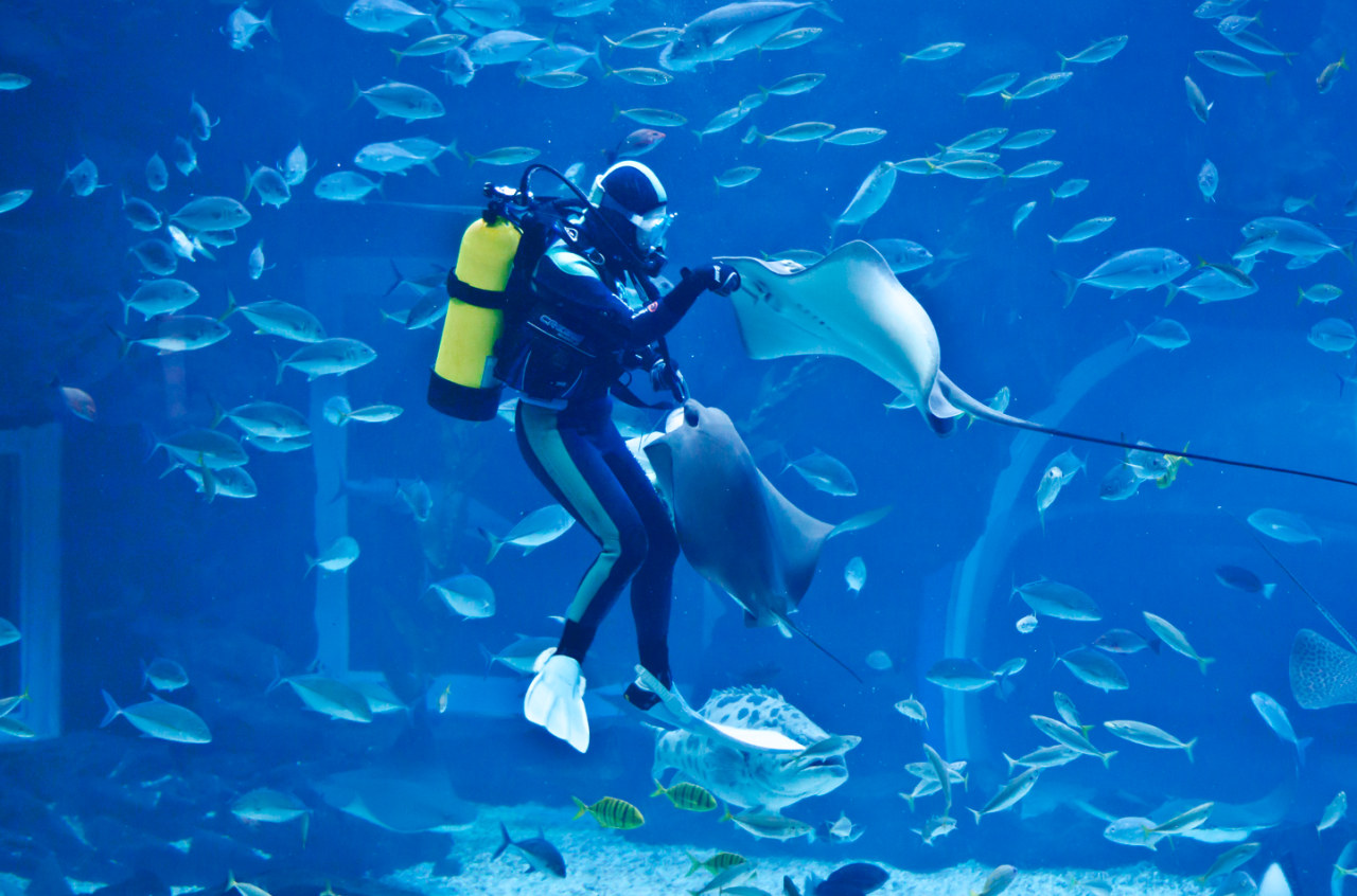 色彩斑斓的水族馆,展示着各种海洋生物,您可以在这里享受喂食动物和观看美人鱼表演。