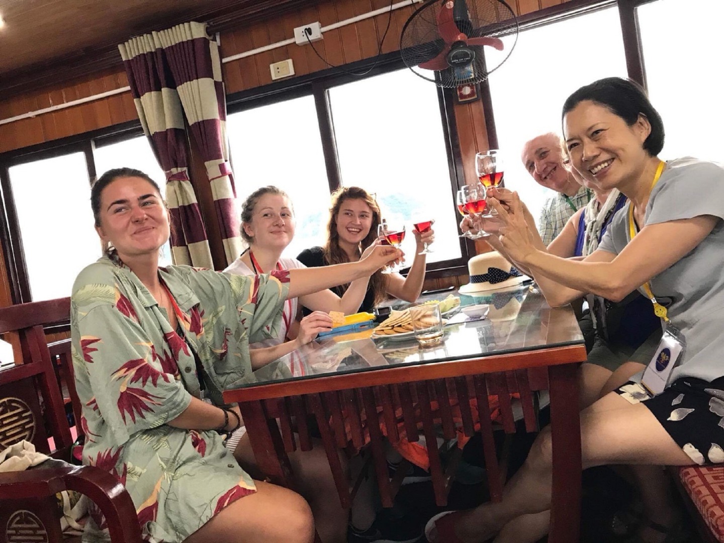 前往 Luon 洞和 Titop 岛,充分享受下龙湾之旅!搭乘游船前往被联合国教科文组织列为世界遗产的宋索石窟,探索团洲岛的许多自然奇观。另一个精彩景点是参观 Luon Cave,它是下龙湾最吸引人的自然景点之一。您可以尽情享受现场提供的水上活动,无论是划皮艇还是乘坐竹船。您的最后一站是蒂托普岛。该岛是越南真正的瑰宝,因其令人惊叹的下龙湾全景而成为越南的旅游目的地之一。不要错过这次徒步数百级台阶到达 Titop 山顶观景台的机会,在这次旅程中体验一次温和的寻求刺激的冒险。