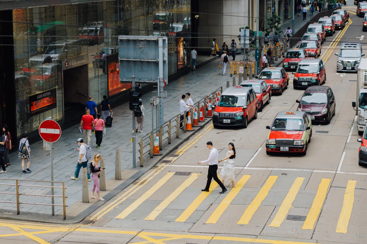 以标志性的香港红色出租车作为背景,为您的照片拍摄增添一丝魅力,捕捉城市的活跃精神,让您的爱情故事真正令人难忘。