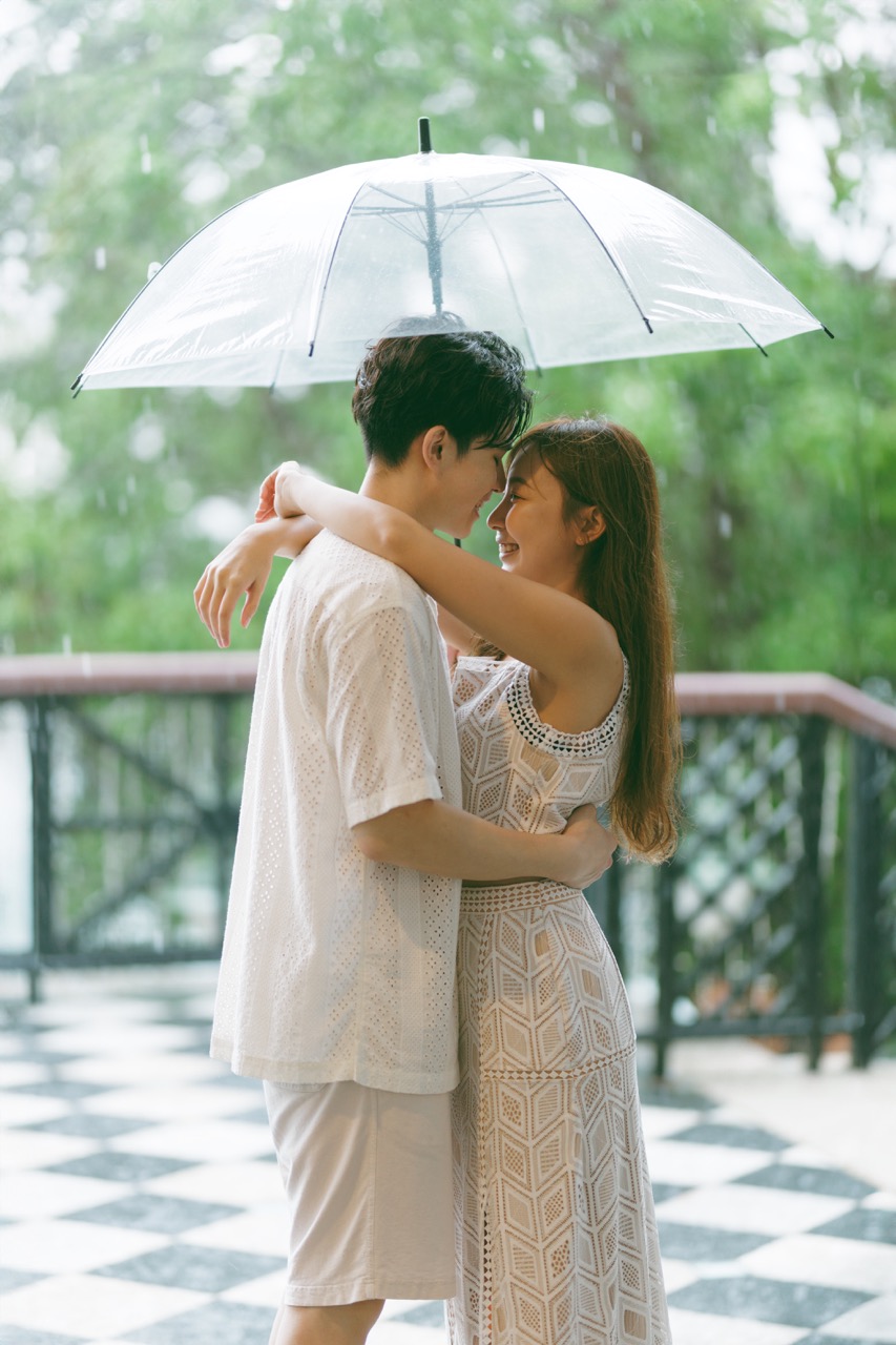 捕捉轻松亲密的时刻,周围宁静的环境彰显你们爱情和联系的美丽。