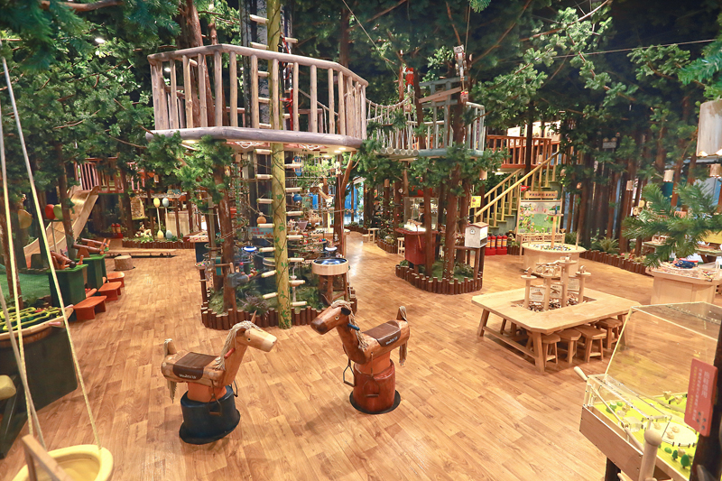 「木育森林 The Wooderful land」里提供五十种以上富含教育、益智动脑、手脑协调、互动娱乐的木制游戏,让人透过实质的游憩空间来感受木质素材的温暖