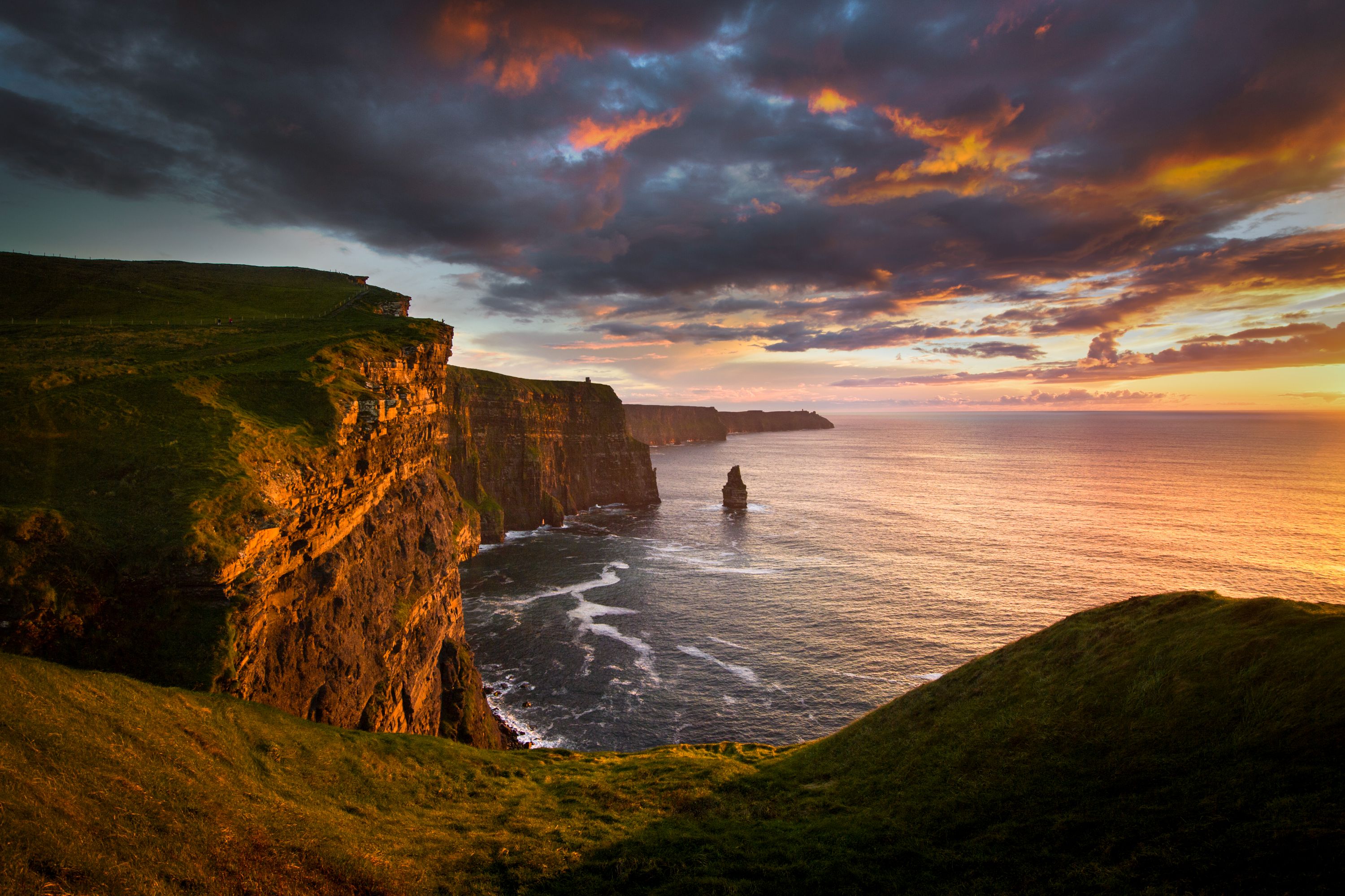 捕捉莫赫悬崖日落的魅力,欣赏壮丽景色与海洋地平线的交汇