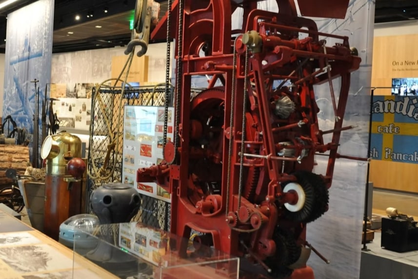参观国家北欧博物馆的复杂机械展品,展示北欧国家的工业遗产