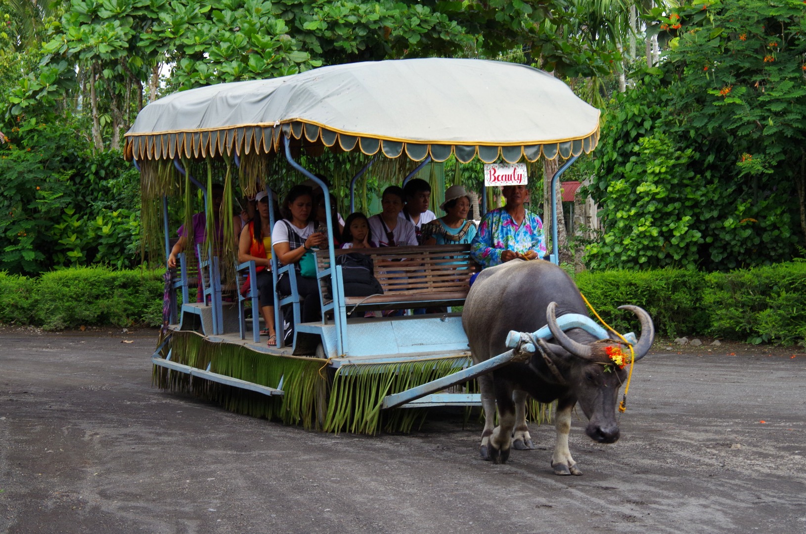 乘坐由菲律宾的国兽——水牛拉着的手推车,探索埃斯库德罗别墅的每个角落