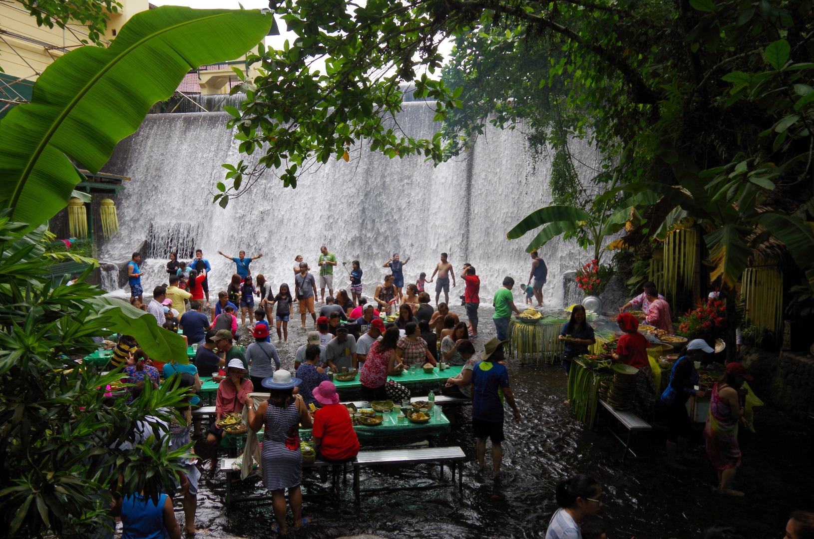 瀑布餐厅位于人造迷你瀑布脚下,是不容错过的自助午餐