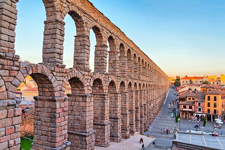 欣赏塞哥维亚矗立的古罗马渡槽这一工程奇迹