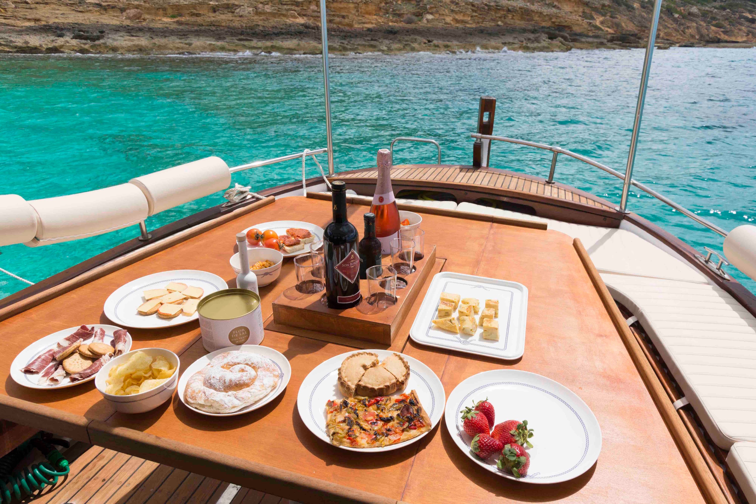 在那里,一位魅力十足、经验丰富的当地船长将等着您登上他的**典型的马略卡船:**一艘漂亮的 Llaüt。