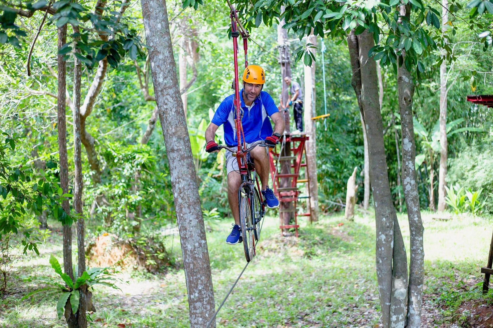 跳回面包车,搭乘一小段路程即可到达滑索。您将踏上包含 29 个游戏的冒险之旅,包括最长的双滑索和最高的游戏,高度可达 18 米,历时约 1 至 1.5 小时。园区提供各种景点,如滑索、木桥、吊桥、绳桥等等!