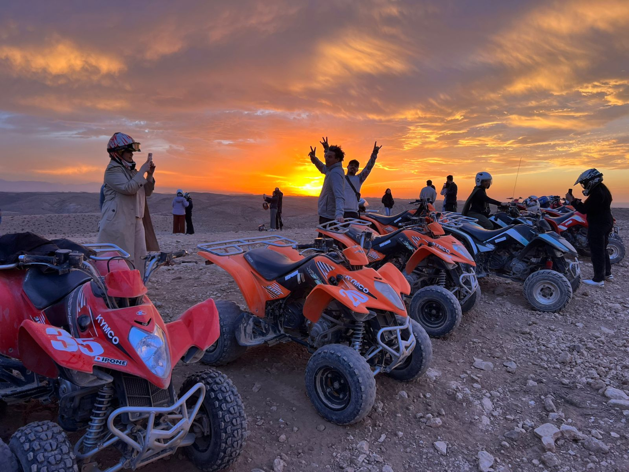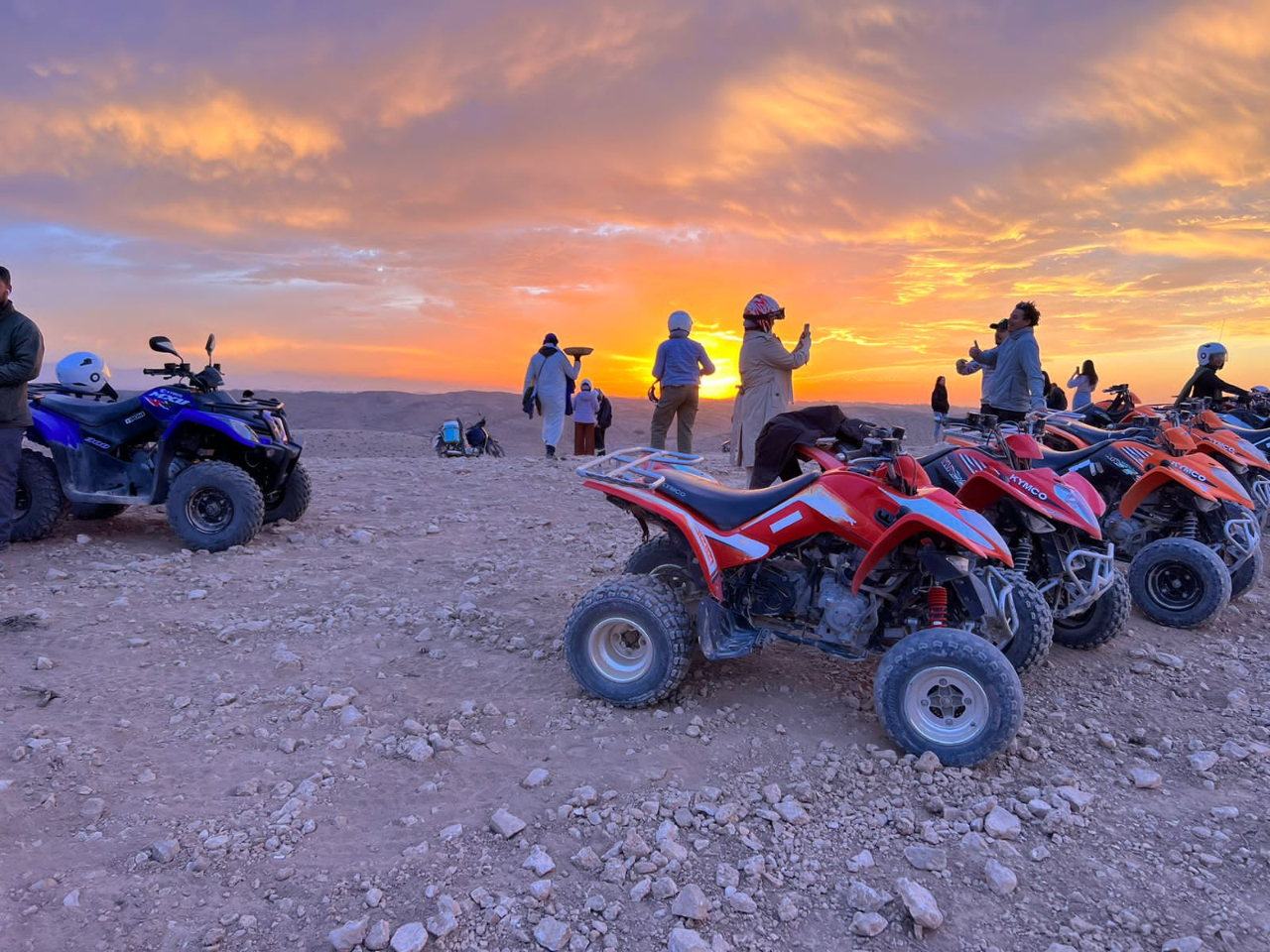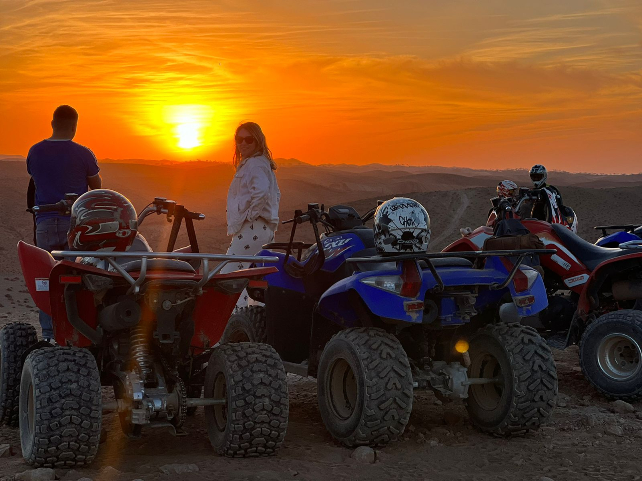 跟随您的导游进入沙漠,骑着四轮摩托车征服沙丘,以阿特拉斯山脉为背景,令人叹为观止。在几个地方停下来拍摄周围自然美景的难忘照片。