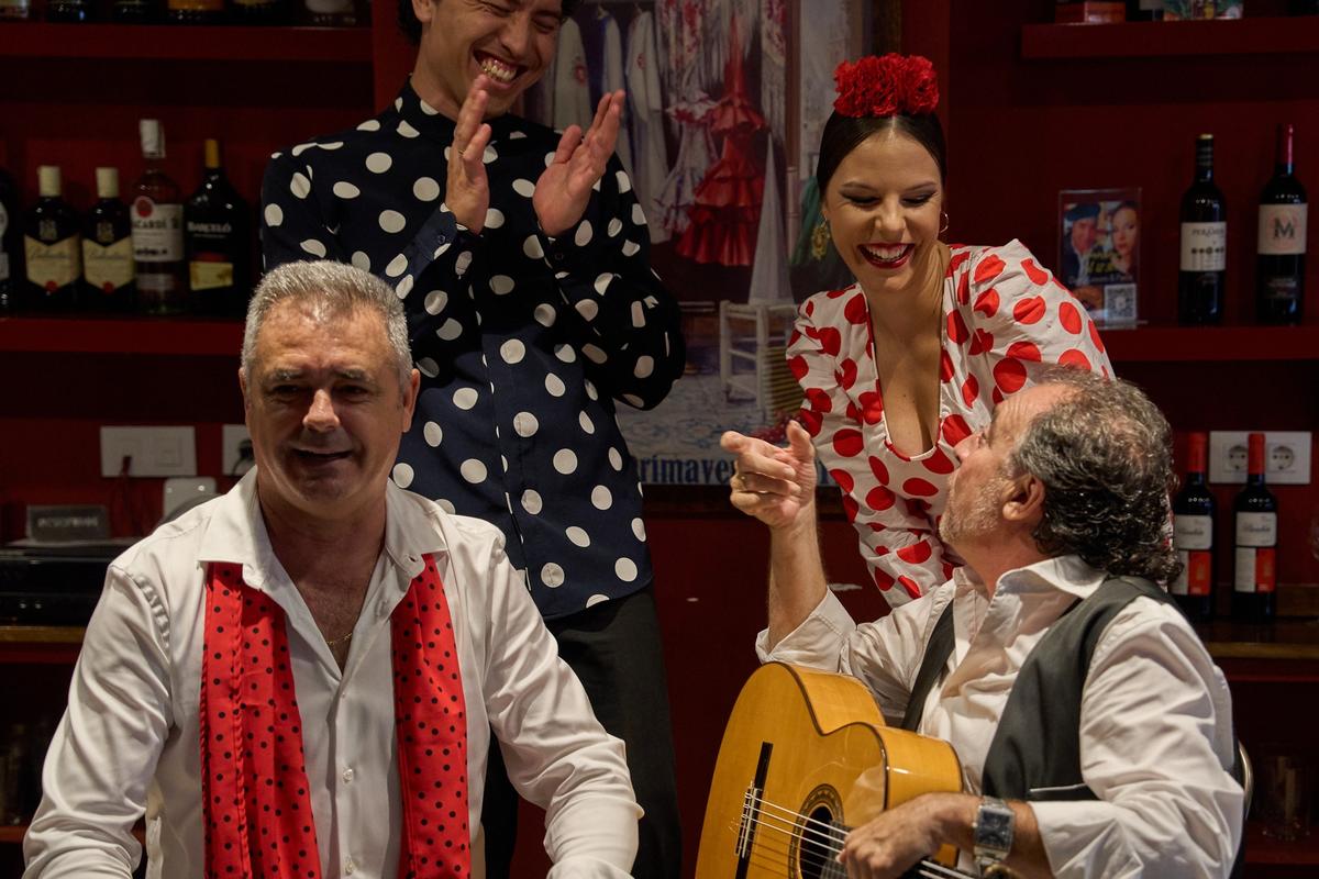 在特里亚纳体验弗拉门戈充满活力的中心,激情和传统在这里焕发活力。我们迷人的 1 小时表演由一位才华横溢的歌手、一位技艺高超的吉他手和两位精力充沛的舞者组成,呈现出色彩缤纷、生动活泼的表演。享受源自塞维利亚、赫雷斯、加的斯和韦尔瓦的标志性弗拉门戈风格的丰富、深情的声音,如“fandangos”、“bulerias”和“alegrías”
