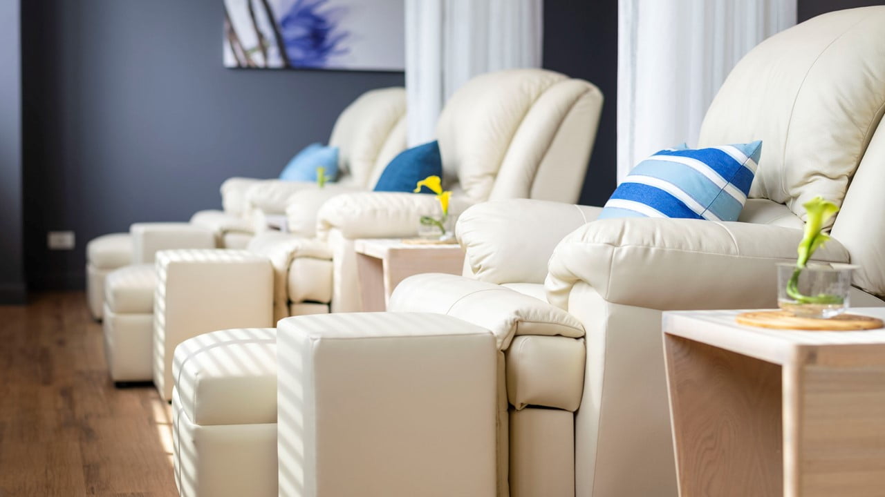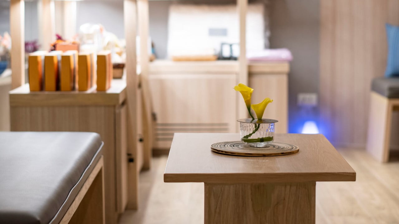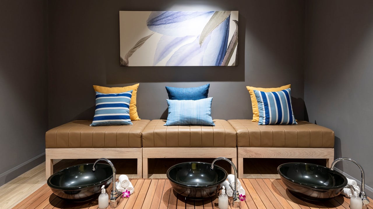 该分店位于拉差达地区中心地带的宜必思尚品曼谷拉差达酒店。距离1号出口仅100米2 地铁惠光站。这家分店的设计理念是现代、独特,但仍然包含着放松的感觉,蓝色、浅绿色和黄色的柔和色彩与灰色墙壁和浅色木瓦的完美结合,完美地凸显了 Let's Relax Spa 的身份。