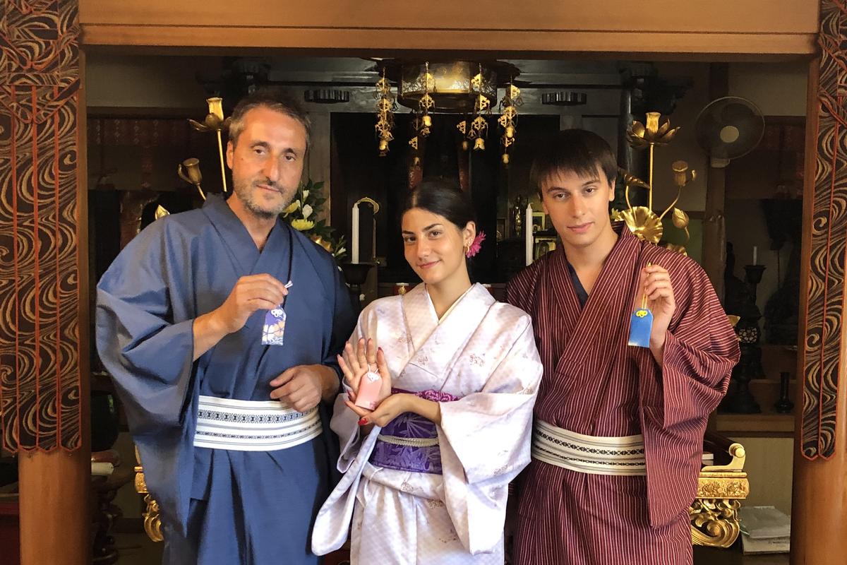 穿着和服的正宗茶道和御守魅力制作