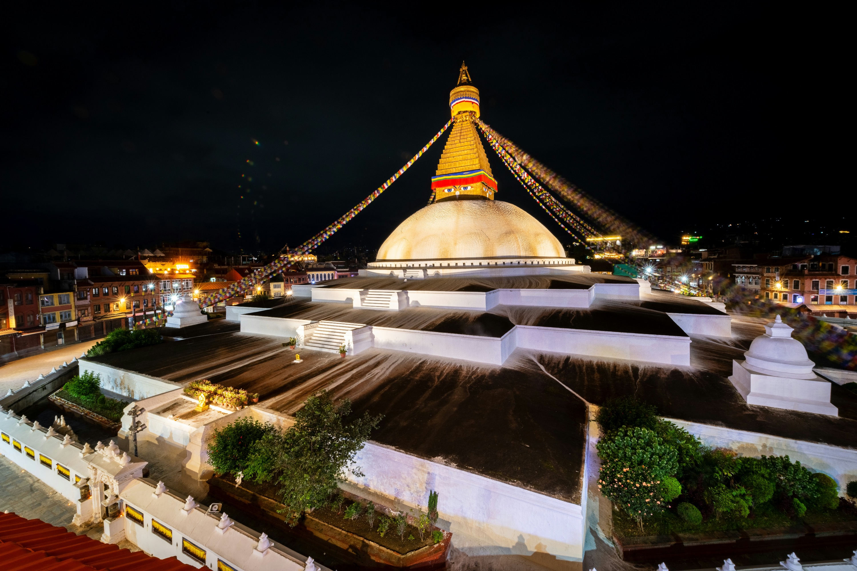 接下来,参观世界上最大的佛塔之一博达那。您可以看到朝圣者绕着佛塔行走、转动转经筒和念诵咒语,享受宁静的氛围。