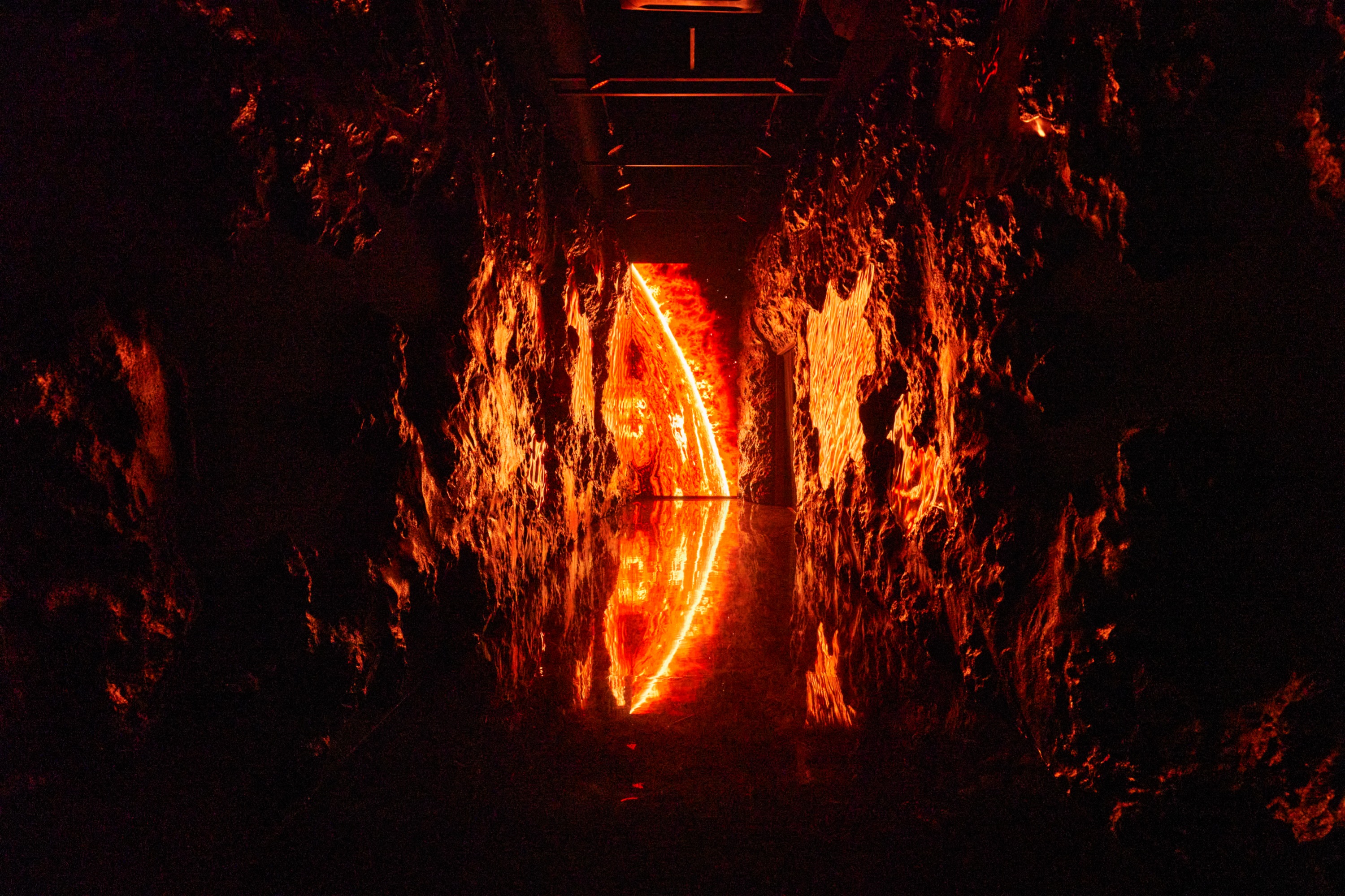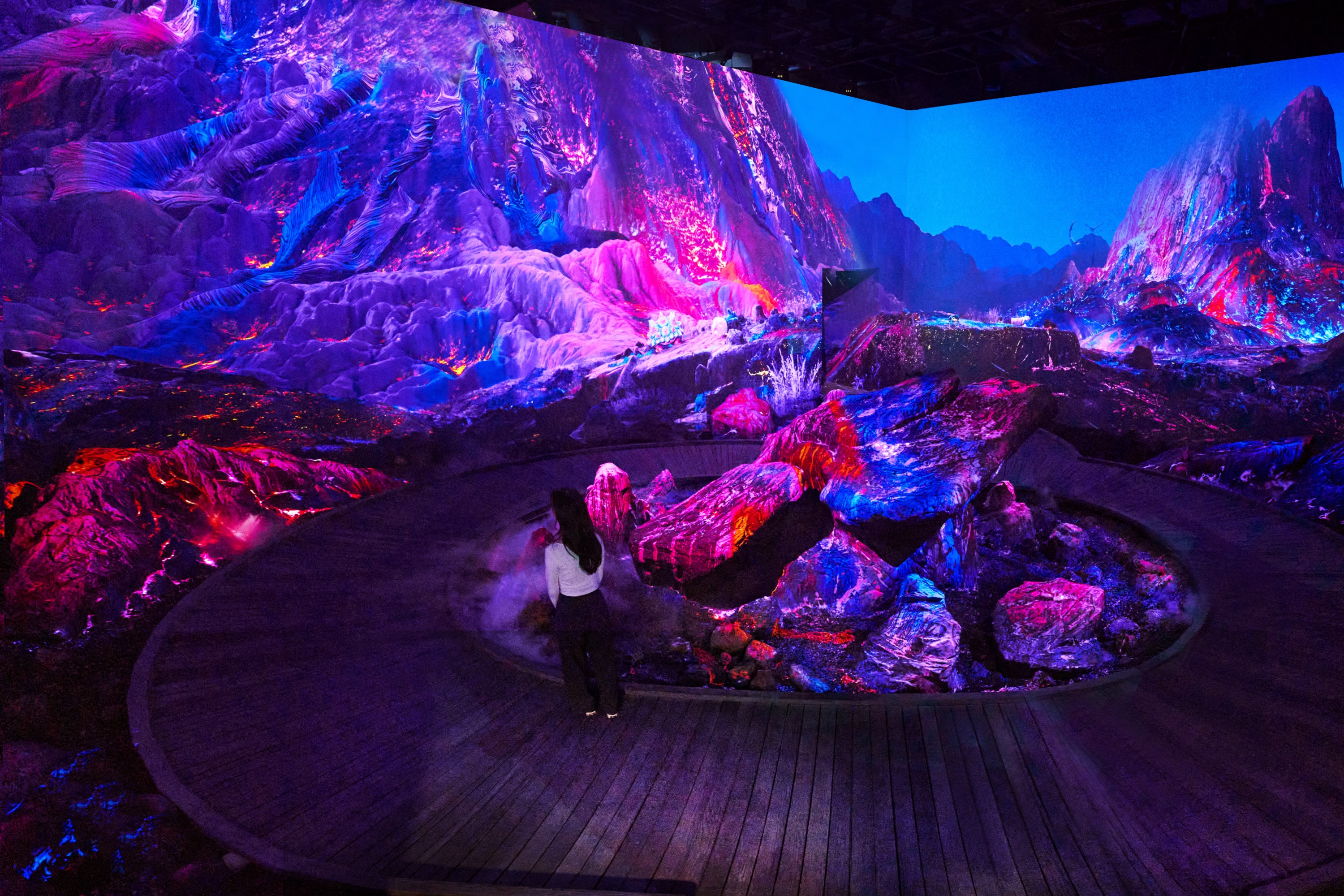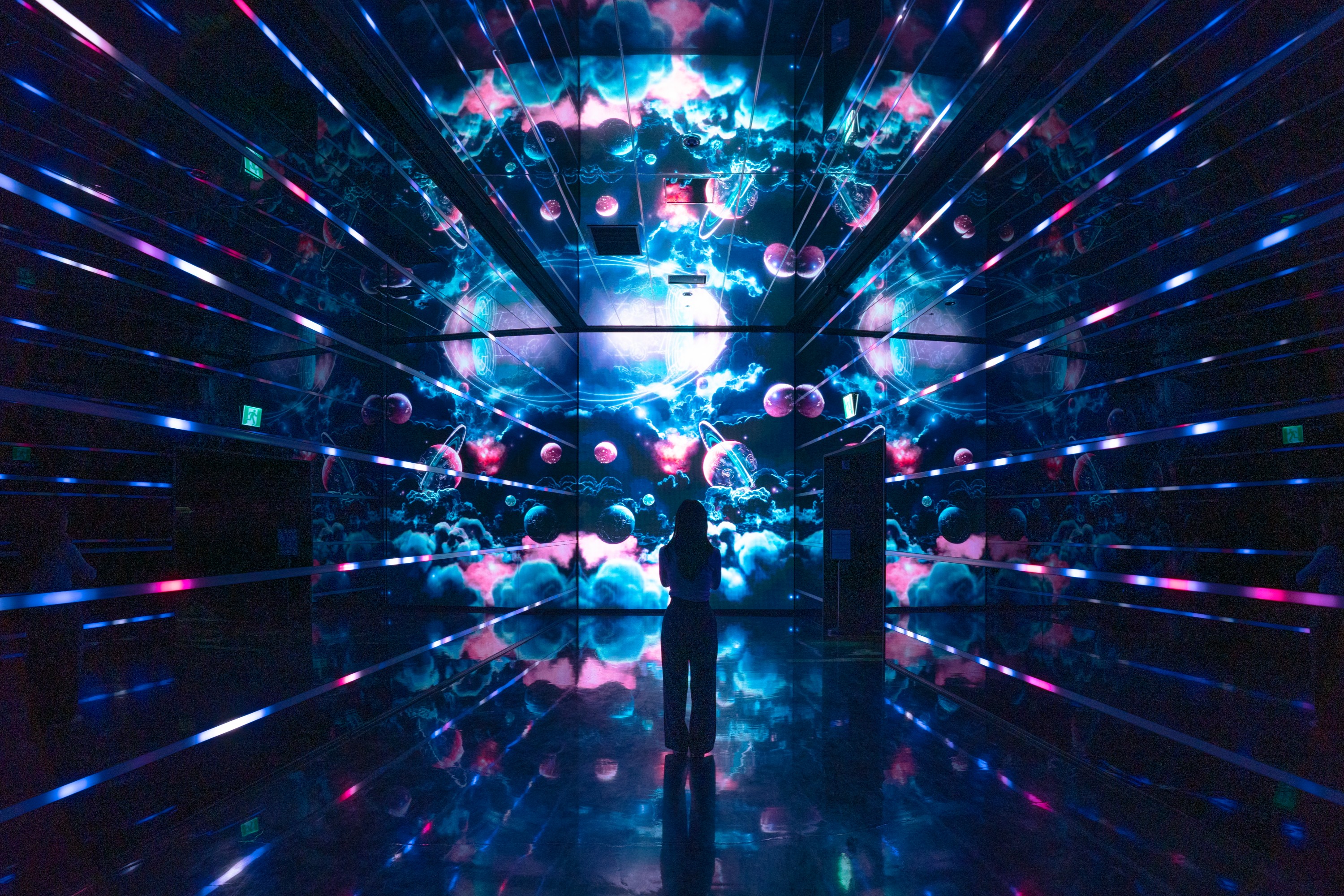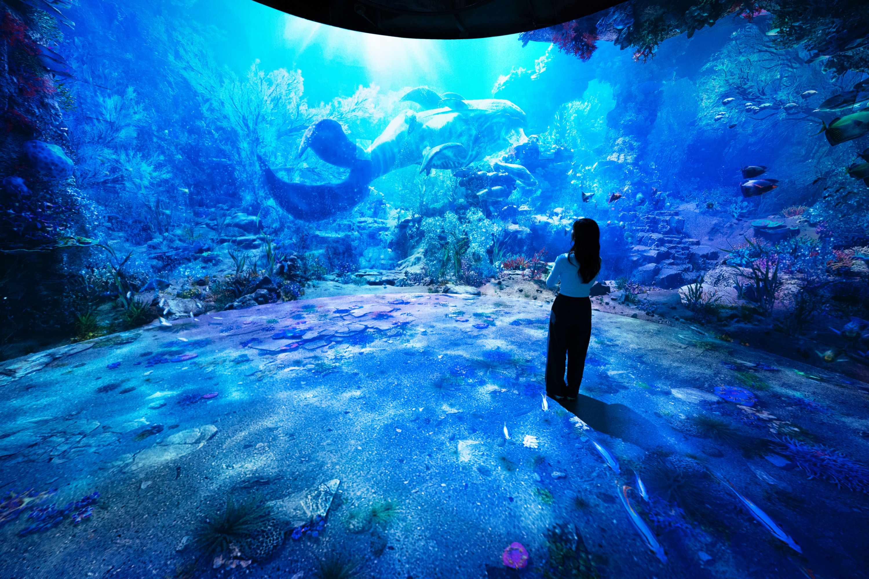 Aurora 是一条沉浸式娱乐街,150 公尺长的 LED 显示器装饰在高高的天花板和墙壁上,呈现出超现实的图像。