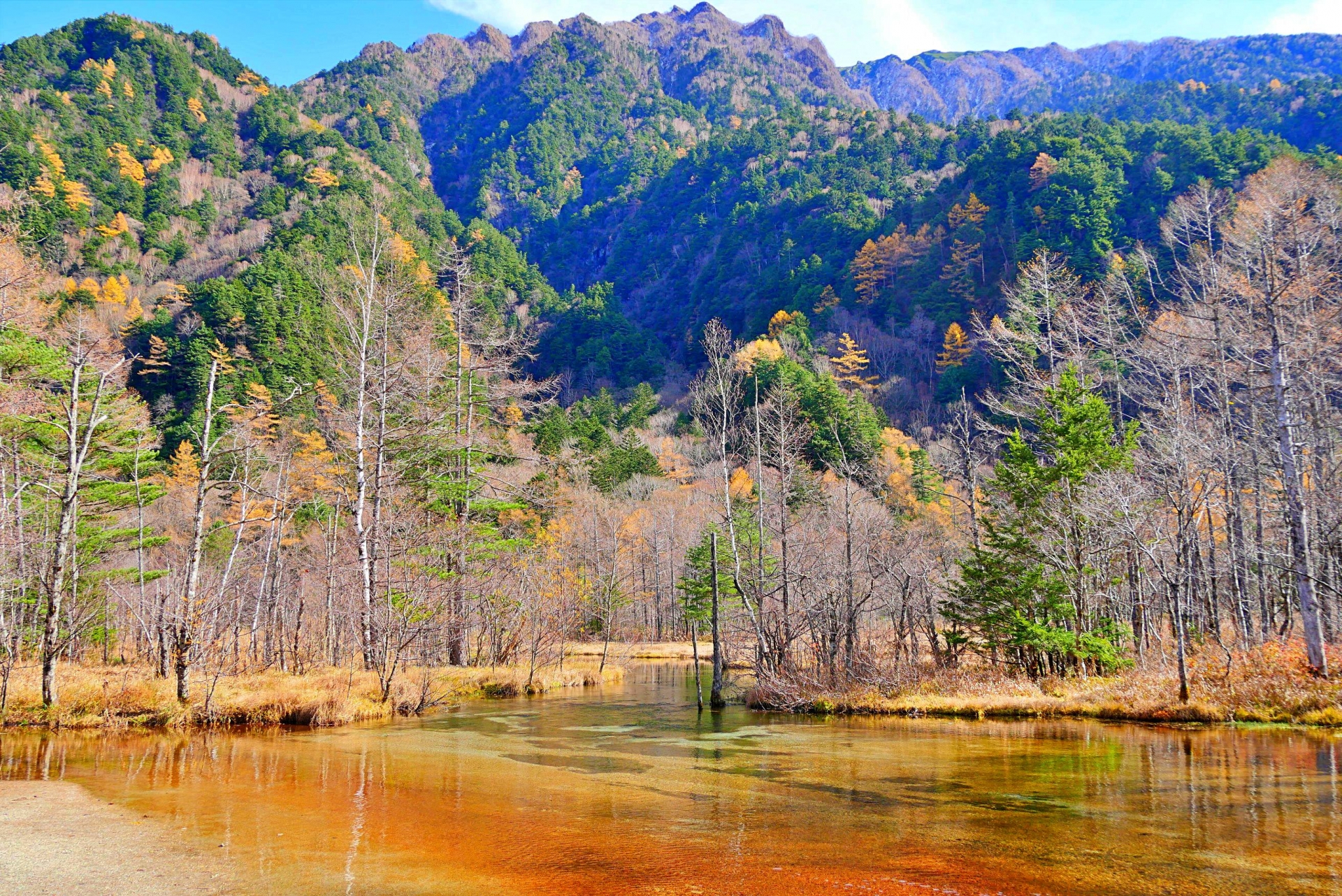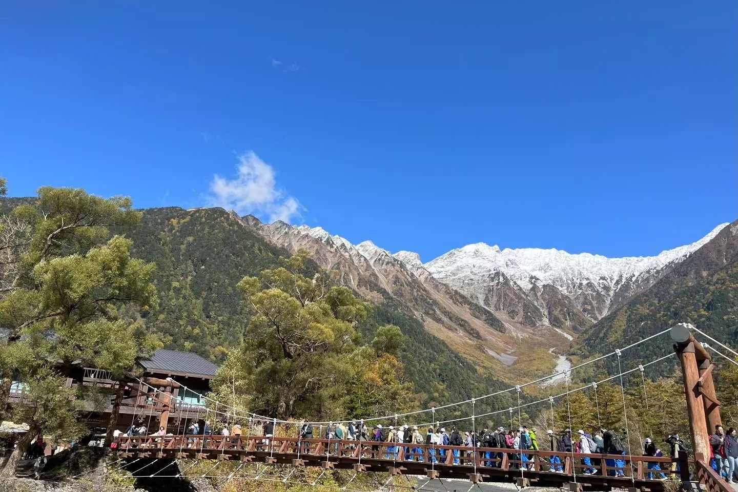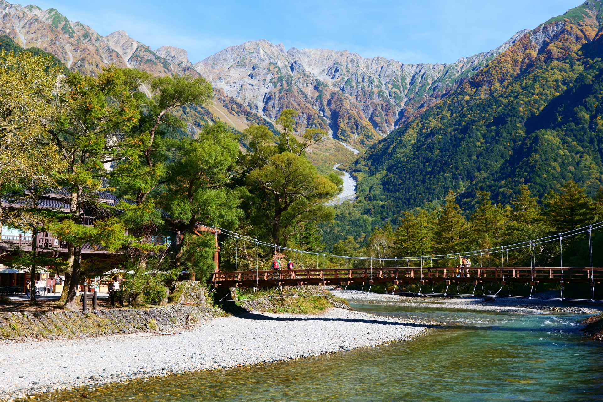作为上高地的象征,河童桥提供了绝佳的观景点。从桥上,您可以眺望到壮丽的穗高连峰、烧岳以及清澈的梓川。特别是在5月长假和红叶季节,河童桥成为热门景点,吸引了大量游客来此欣赏秋季的迷人风景。