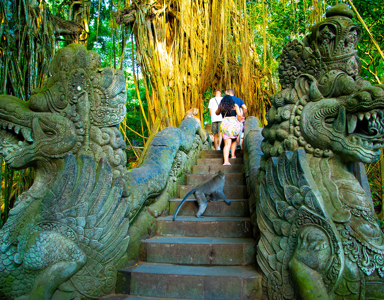 参观乌布各种野生动物猴群和传统历史建筑