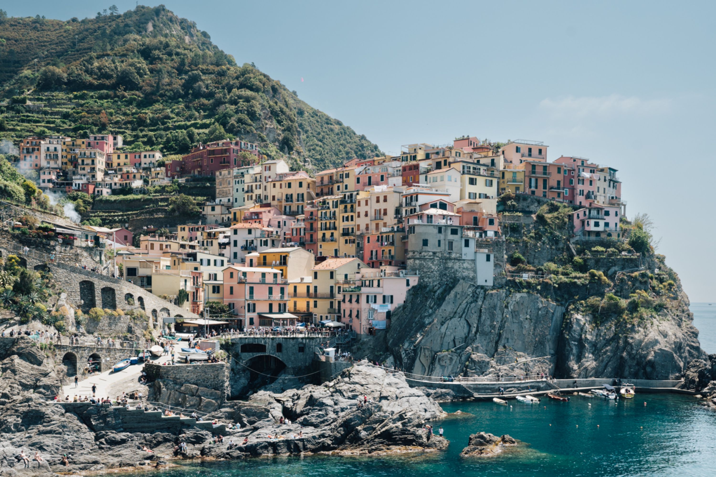 马纳罗拉柔和的建筑与宁静的大海形成鲜明对比的独特景观
