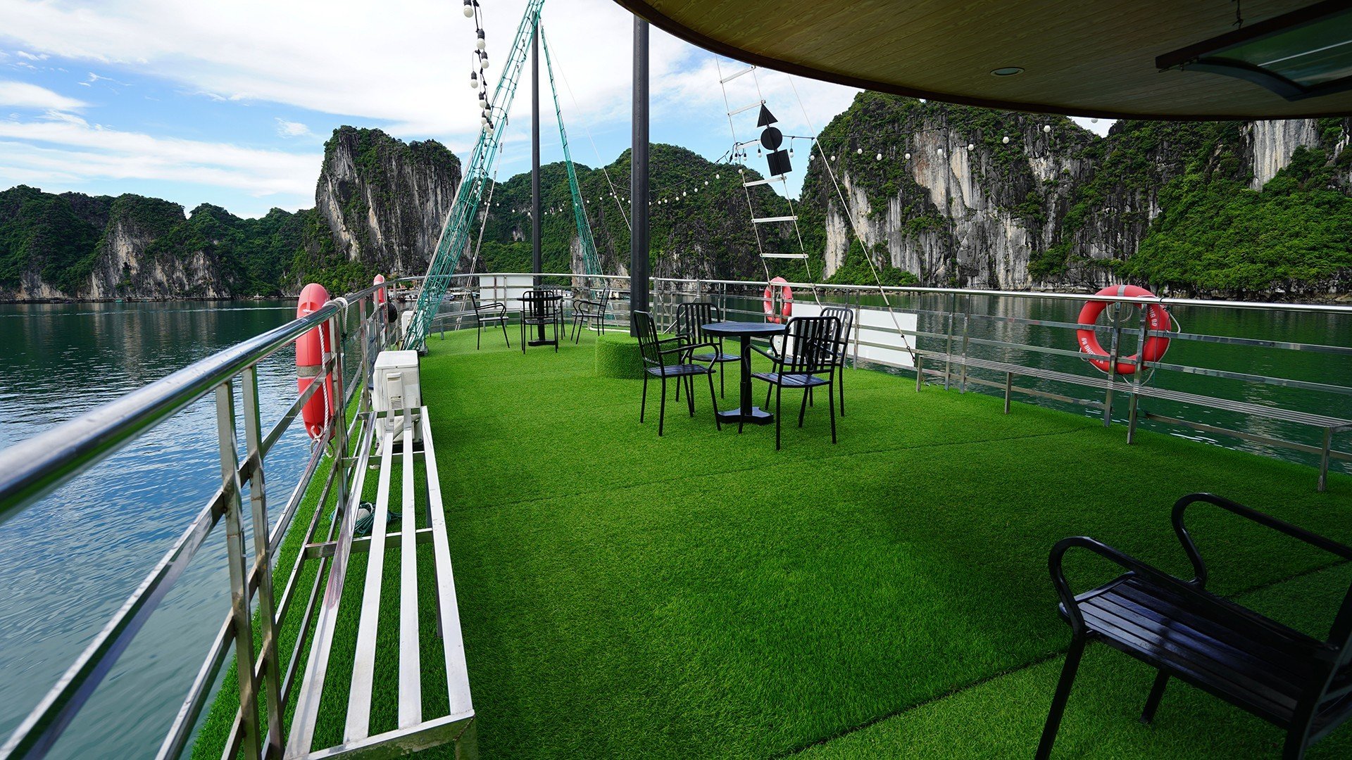 亲眼见证越南北部的骄傲,饱览其翠绿的海水和丰富的自然景点。从甲板上欣赏下龙湾的景点之旅,惊叹海湾的空灵之美。然后,您将被护送到船上的餐厅,在那里享用您选择的餐点。