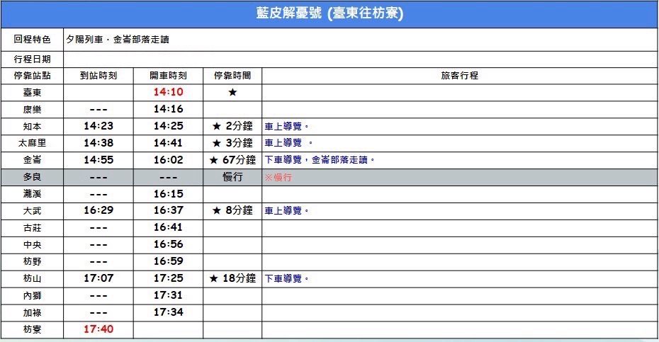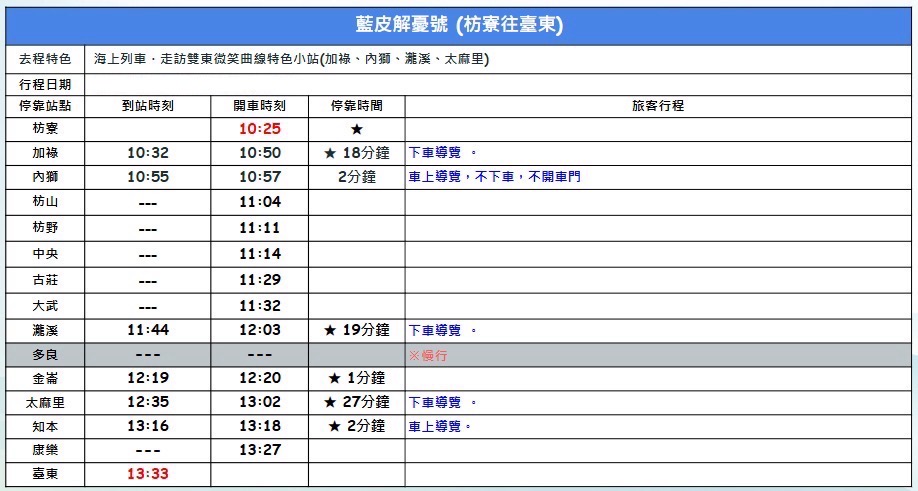 屏东-蓝皮解忧号观光列车| 枋寮-台东