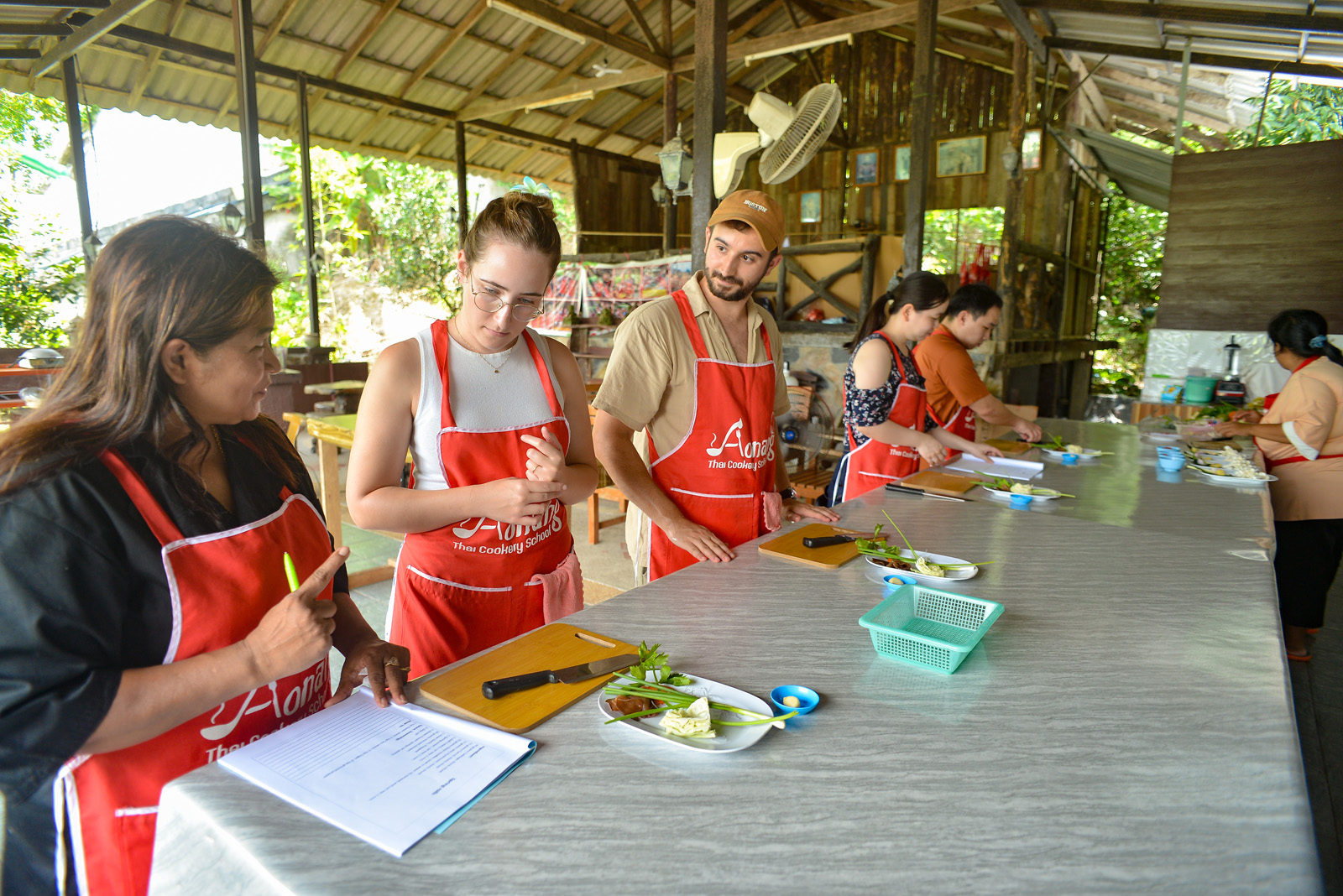 参加我们在甲米奥南的半天泰国烹饪课程,让自己沉浸在泰国美食的艺术中。在专家指导下,掌握传统香草、香料和咖哩酱的制作方法,准备 5 道正宗菜肴。享受您的创作盛宴,并将食谱书和烹饪证书带回家。体验包括从奥南酒店的便利接客服务和舒适的回程接送服务,让您轻松享受美食之旅并继续探索甲米