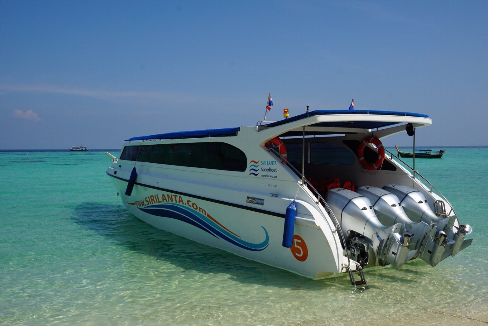 毫不费力地抵达 Pak Bara 码头,并在他们的一艘快艇上坐下